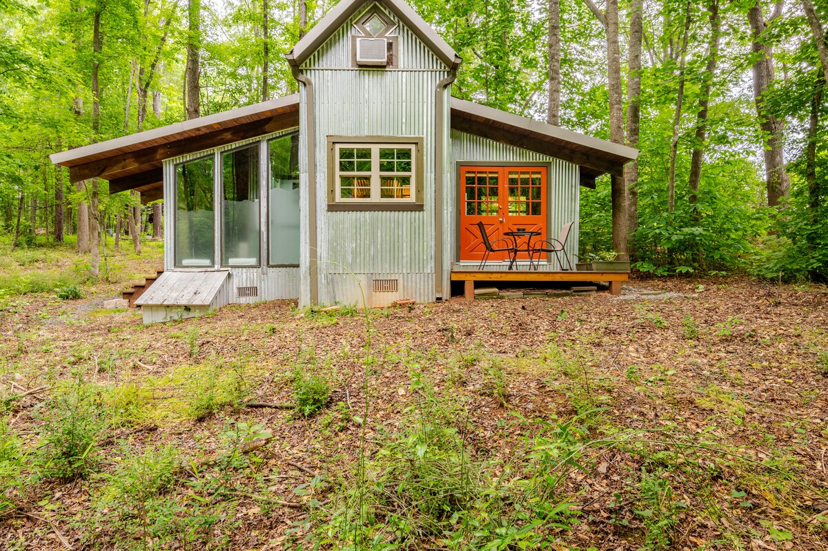 « Tiny House » très proche du centre-ville. Parfait pour une personne seule ou un couple. S'il n'y avait pas d'arbres, vous pourriez voir la brasserie Creature Comforts depuis l'allée. Conçu avec goût pour être efficace et confortable. Dispose d'une kitchenette si vous souhaitez cuisiner à la maison, d'une télévision par Internet, d'une connexion Wi-Fi, d'une chaîne stéréo avec un tourne-disque, d'une chambre Queen Size et d'une salle de bain complète.