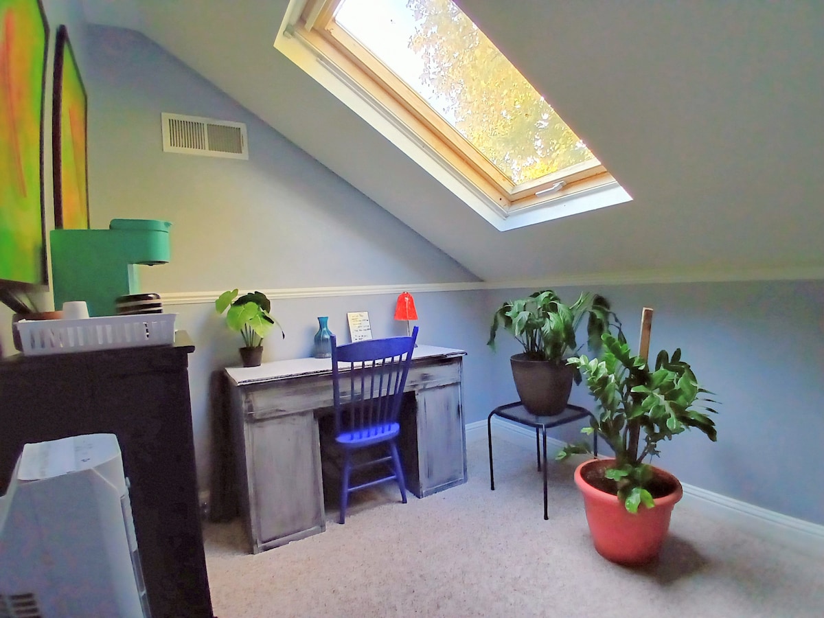 Charme rétro du milieu du siècle. Entièrement approvisionné avec tout ce dont vous pourriez avoir besoin. Apportez simplement vos vêtements ! Chauffage et climatisation. Parking dans la rue avec caméras de sécurité. Matelas VIOLET de taille Qn. Pack n Play avl sur DEMANDE (frais de 15 $ ) Réfrigérateur, four à micro-ondes, grille-pain, four grille-pain, plaque de cuisson à 2 feux, machine à glaçons, station de café/thé, télévision connectée Fer et planche à repasser, cintres, porte-bagages, ventilateur. La table et les chaises forment un excellent poste de travail Des caméras de surveillance Ext surveillent l'avant de la maison principale (y compris la rue où vous vous garerez) et la porte d'entrée du studio)