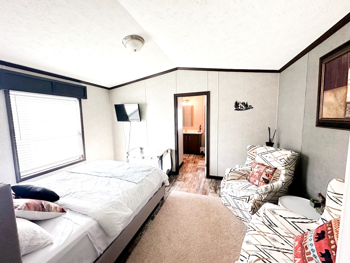 Notre complexe comprend une belle maison de vacances de trois chambres et un terrain qui surplombe la rivière James. Il est entouré d'arbres dans la nature sauvage canadienne. Profitez d'un moment de détente dans le calme et la tranquillité. Idéal pour les familles. Échappez à la vie trépidante tout en restant dans le confort. Les réservations sont basées sur une occupation double avec un maximum de 6 personnes. 35 $/personne/nuit pour les voyageurs supplémentaires. Les animaux sont les bienvenus avec 65 $/animal/séjour. Maintenant avec WIFI gratuit !