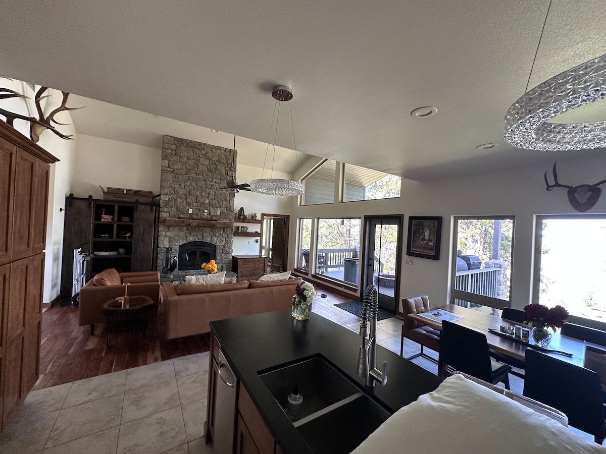 Détendez-vous lors de cette escapade unique à quelques minutes de la route de l'État ou à 14 minutes du centre-ville d'Orofino. Endroit idéal pour les chasseurs, les pêcheurs ou ceux qui veulent simplement sortir de l'agitation. De la place pour garer ces VTT, bateaux, etc. 2 lits queen size et un canapé convertible qui se transforme en lit double. Pas de lits roulants, mais nous avons un autre canapé qui se transforme en un lit jumeau et un matelas gonflable. Parfait pour des grands groupes. À l'extérieur, vous trouverez une station de nettoyage du poisson et un barbecue au propane.