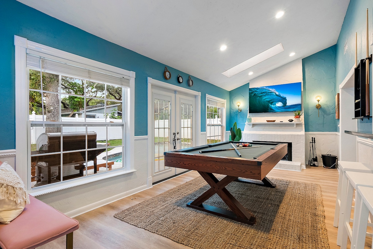 Charming home with stylish baths & bedrooms. Heated pool included in the price. Gas fire-pit, outdoor games, large secluded backyard! Game room! Near Honeymoon Beach & Caladesi Island open for sunbathing & water sports; historic downtown Dunedin with cute shops, cafes, restaurants & cultural events. The area has a number of top-notch golf courses and trails. Palm Harbor's welcoming community & mild climate make it an ideal getaway for outdoor adventures, cultural experiences, and coastal views.