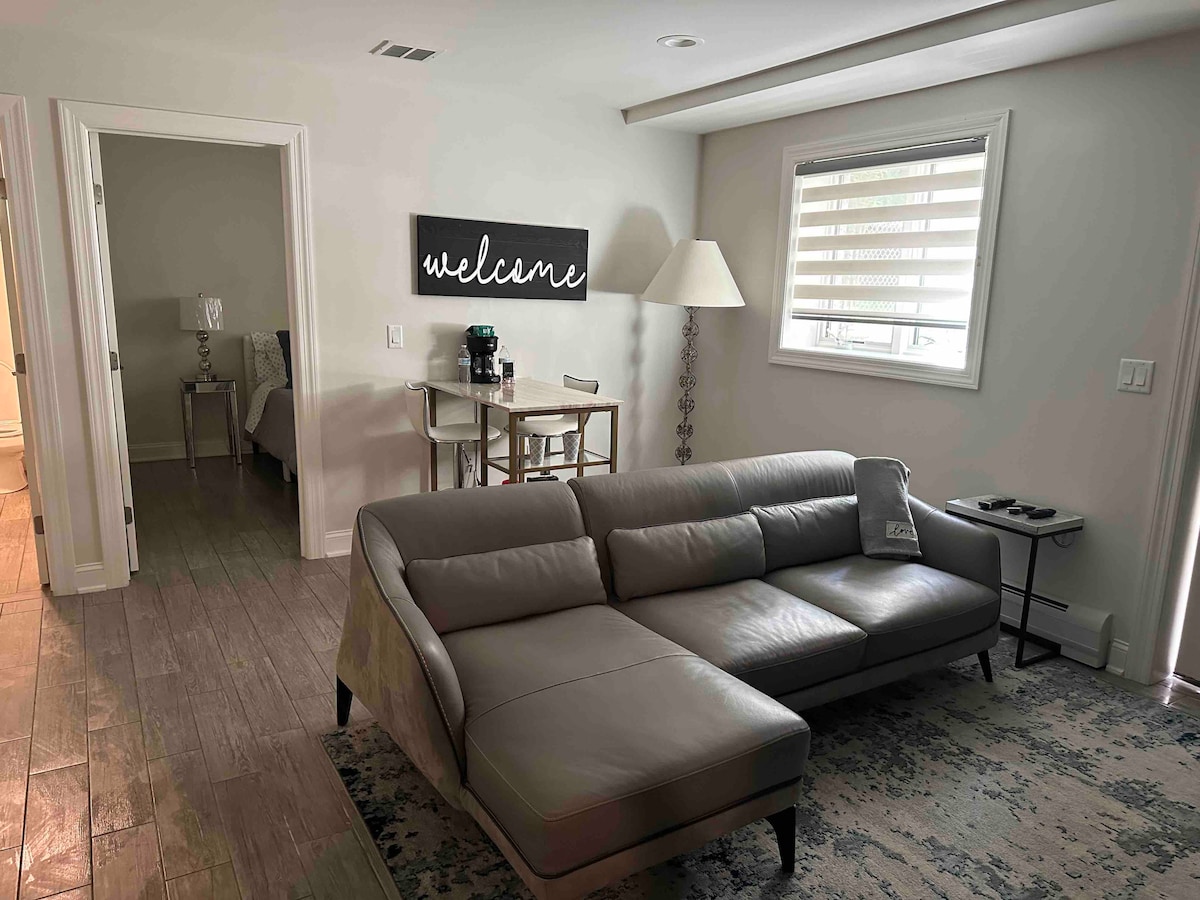 Welcome to our private one-bedroom apt/basement. *MetLife Stadium 15 mins driving. *New York, Manhattan/Times Square (bus stop is 7 minutes away walking distance.) *Newark Airport-25 mins driving. *American Dream Mall -15 mins. *Soho Spa Club-6 mins. Our charming apartment is part of a two family house where we live in. There are great restaurants, markets, bakeries, cafes, etc. Our neighborhood is friendly, safe and secure.