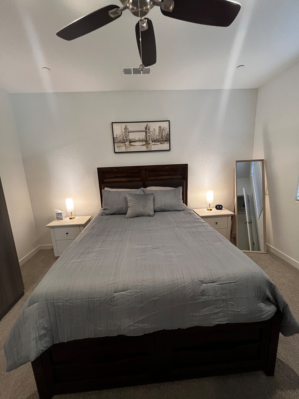 Bienvenue dans notre superbe Airbnb dans le nord-est de Fresno ! Ce joyau caché contemporain offre style et confort. Reposez-vous facilement sur le matelas hybride en mousse à mémoire de forme King ou le matelas en mousse à mémoire de forme Queen. Profitez de la cuisine design entièrement équipée, des téléviseurs intelligents et d'une connexion Wi-Fi gratuite. Besoin de travailler à domicile ? Pas de problème ! Trouvez un espace de bureau ici. Restaurants/marchés à moins d'un mile. Woodward Park, à seulement 5 minutes. Parc national de Yosemite, à 1h15.