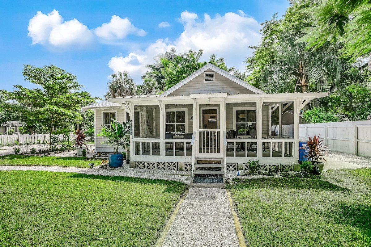 Located less than One Mile from the Beach in the Center of the City Hustle, Open Spaces & Bright Beachy Vibes gently remind you of why you came! French Doors in both Bdrms open to a Beautiful Screened Lanai with Outdoor Dining & BBQ Overlook a Little "Beach". Master Bdrm has a King Bed Ensuite Bathroom w/Shower; additional Guest Bdrm has 2-Twins or King Bed and Hall Guest Bathroom. This completely renovated cottage shares 1.62 acres with an adjacent house and was designed for absolute privacy.