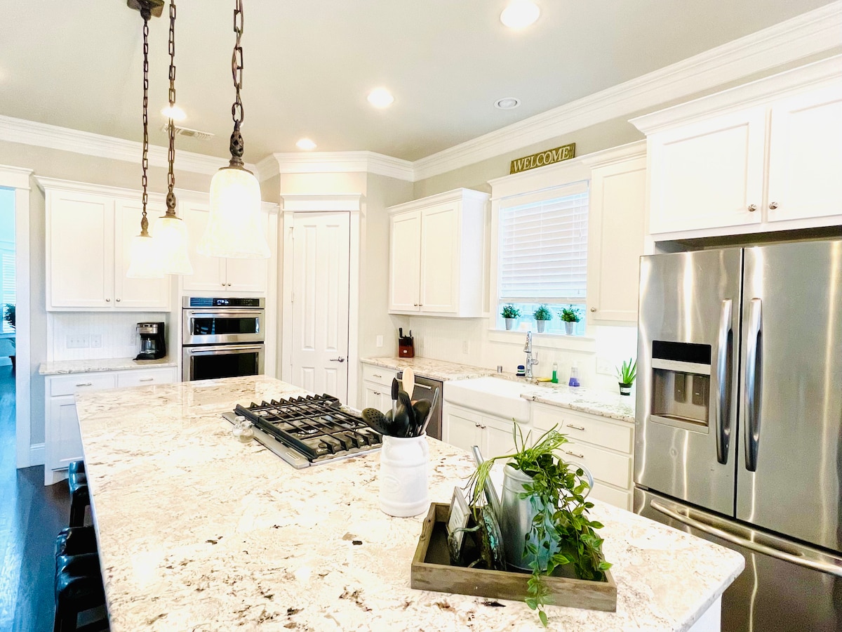 Profitez de votre séjour dans le centre-ville de McKinney dans l'une des maisons les plus proches de la place. Le centre-ville animé et historique possède de superbes antiquités, des magasins et des restaurants. La maison elle-même dispose d'une cuisine gastronomique, de 2 suites parentales, d'une grande salle de jeux avec 2 canapés convertibles, d'un jeu d'arcade Pac-Man, d'un jeu d'arcade de basket-ball intérieur, d'une table de poker et d'un salon avec une cheminée et bien plus encore.