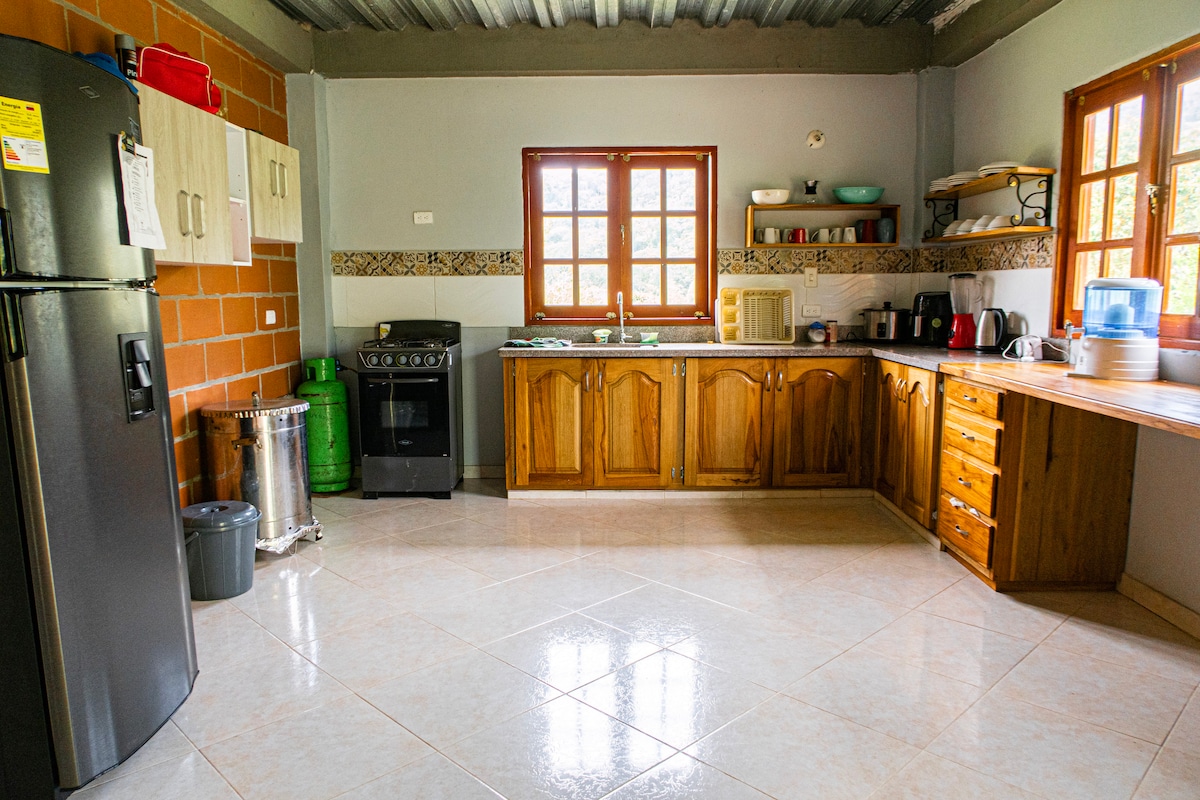 Profitez de la réservation de notre belle Finca avec une capacité de 6 à 12 personnes avec 3 chambres et une salle de bain privée dans chaque chambre, ainsi que d'excellents espaces familiaux tels que la cuisine, la piscine, la buanderie, les zones de barbecue, les espaces verts, le parking et le salon. Nous sommes situés à environ 5 minutes de la rivière la cristalina où vous pourrez accéder gratuitement aux piscines. En outre, vous pourrez faire des promenades en amont de la rivière ou admirer des paysages spectaculaires.