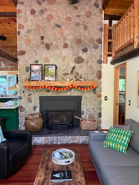 Le chalet du charpentier est décoré d'outils de menuiserie et d'exploitation forestière vintage qui ont été utilisés pendant plusieurs générations dans notre famille. Rainier possède une riche histoire d'exploitation forestière, de bois et de travail du bois. Certains outils ont été trouvés à proximité. Profitez d'un cadre champêtre paisible avec des cerfs, des oiseaux, des lynx occasionnels, des écureuils, des ratons laveurs, des élans occasionnels, mais à quelques pas de la ville. Regardez les cerfs manger des pommes et détendez-vous à l'ombre en vous promenant sur nos 14 acres ou profitez-en depuis vos fenêtres.