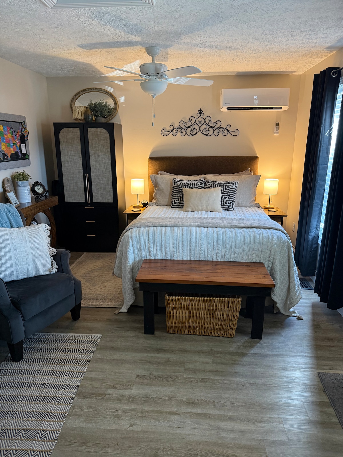 Notre studio est une extension récemment rénovée de notre logement. Détendez-vous facilement et assuré, sachant que nous sommes juste à côté pour vous aider de quelque manière que ce soit ! Nous sommes situés à moins de 2 miles de Lindsey Wilson University, entre Green River Lake et Lake Cumberland et à moins d'un mile de Cumberland Pkwy. Nous sommes prêts à accueillir des voyageurs qui sont en ville pour des événements, rendre visite à une famille, des vacances ou simplement passer ! Au plaisir de prendre soin de vous pendant votre voyage !