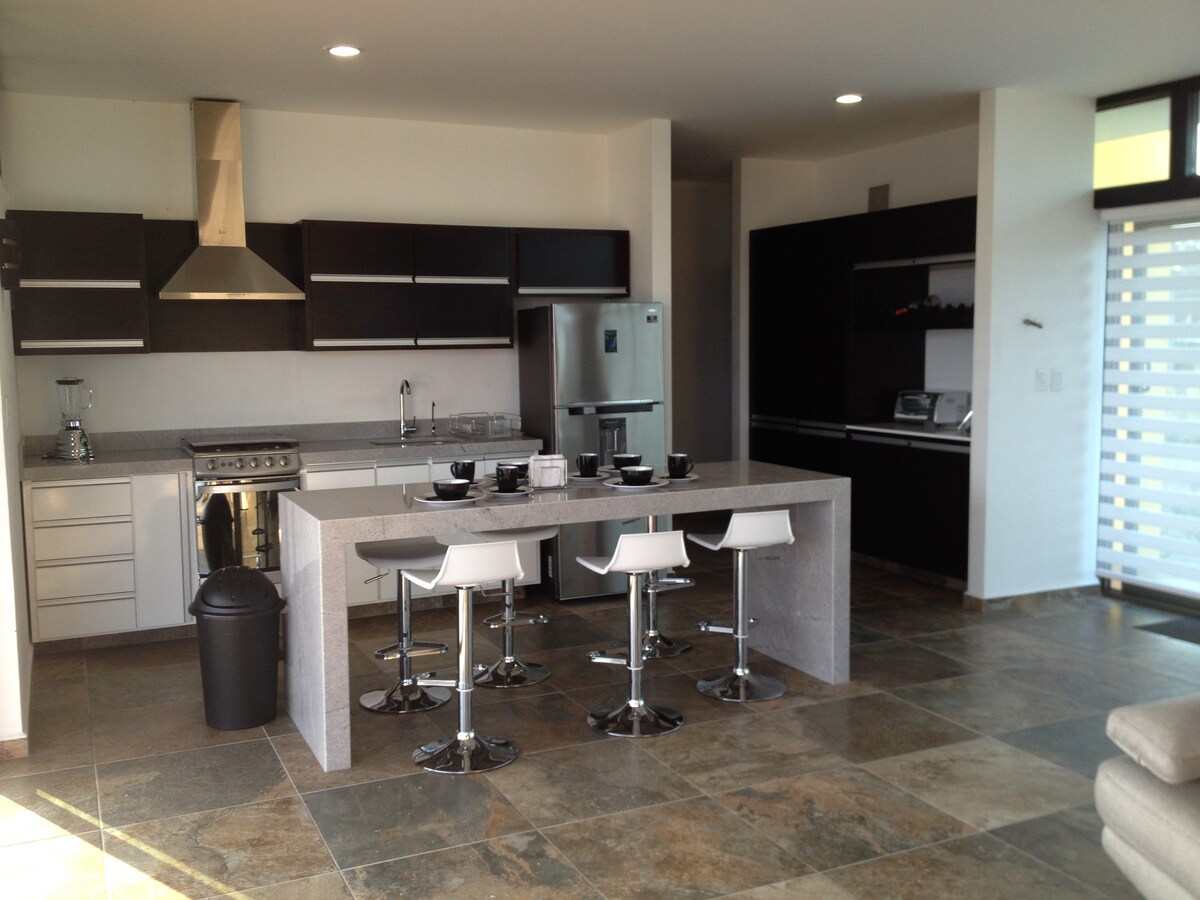 Situé à proximité de Laguna Carrizalillo et Cofradia de Suchitlan, Comala, Colima. Un endroit parfait dans la nature pour passer un week-end ou une semaine relaxante, une éco-maison hors réseau avec une vue imprenable sur la ville de Colima au sud et sur le volcan au nord. La maison dispose de 2 chambres principales avec chacune des lits doubles et une 3ème chambre/ grenier confortable adaptée pour 2 adultes ou jusqu'à 4 enfants. Une cuisine et un salon s'étendent jusqu'à une terrasse spacieuse avec un coin barbecue intégré. Anglais et espagnol parlés.