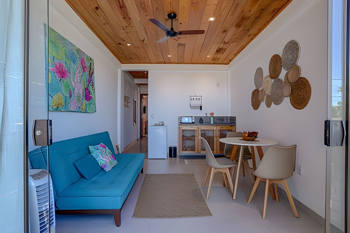 Appartement privé de 420 pieds carrés à Vila Real avec balcon privé et décor d'inspiration mexicaine. Emplacement calme entouré par la nature, à seulement 900 mètres du centre-ville. Comprend le Wi-Fi, Netflix, la climatisation, un garage et l'accès partagé à une terrasse avec piscine et vue sur la mer. Cuisine complète, salon élégant avec télévision HD, lit double luxueux, canapé-lit double confortable et salle de bain spacieuse avec une excellente douche. Parking disponible sur la propriété. Suivez : @vilareal_itacare