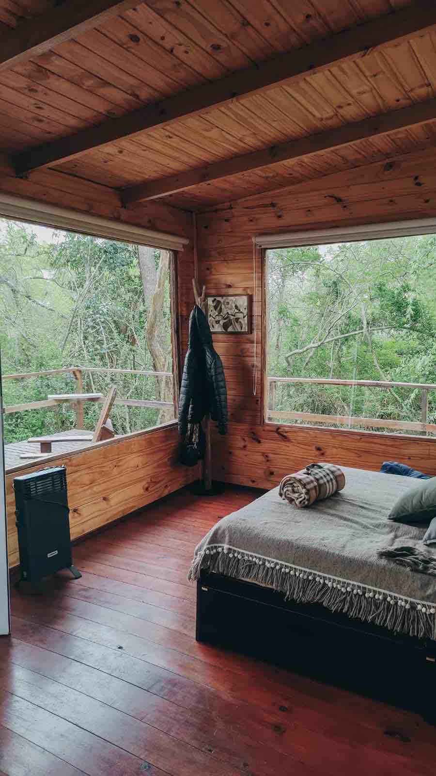 Un endroit pour se connecter avec la nature, profiter et se ressourcer. Une cabane UNIQUE située dans un environnement rural entouré par la nature, à seulement 12 km de Colonia del Sacramento. Construite en hauteur avec une grande terrasse couverte et une vue privilégiée. Équipée pour 2 à 4 personnes. Une chambre avec lit QUEEN et un salon avec canapé-lit et un deuxième lit gigogne en dessous. Cuisine complète, réfrigérateur et poêle à bois. Nous allons vous chercher au port de Colonia à votre arrivée et nous vous y déposerons à votre départ.