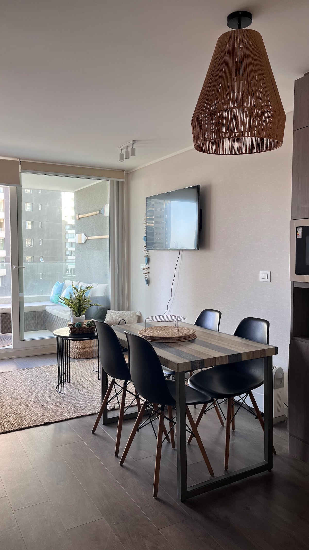 Appartement confortable et moderne avec grande terrasse. Situé dans le meilleur secteur de Concón, à proximité des plages, des parcs, des restaurants et des supermarchés. L'appartement est entièrement équipé pour que vous puissiez profiter de votre séjour. Le bâtiment dispose de 2 piscines extérieures, d'une piscine chauffée, d'une salle de sport, d'une salle d'arcade, de jeux pour enfants, de différents salons et d'un magnifique court de paddle. Équipé du Wifi fibre optique.