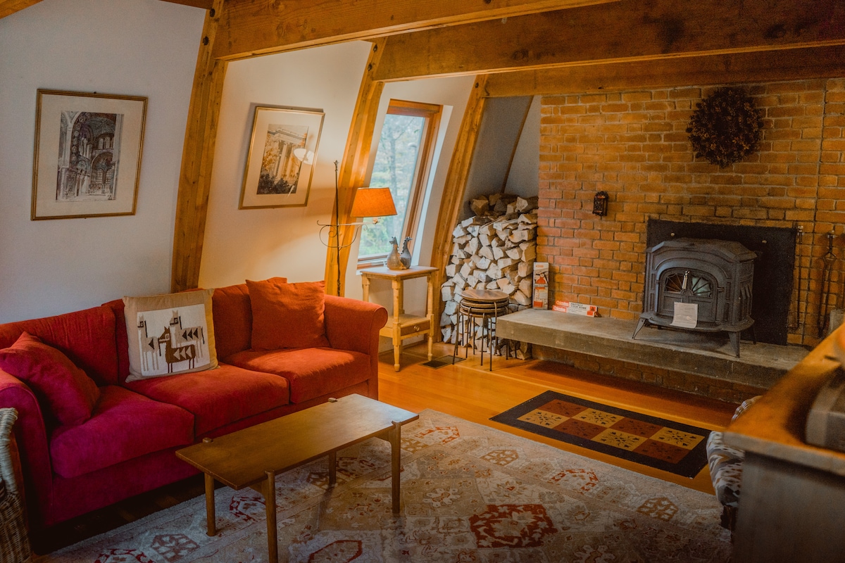 Détendez-vous dans ce chalet d'escapade unique et tranquille. Parfaitement aménagé pour 2 personnes, ce charmant A-frame est spacieux, paisible et bien pensé. Si c'est une escapade romantique que vous recherchez, ne cherchez pas plus loin ! ! - avec le lit king size à baldaquin, la cheminée intérieure et la grande terrasse arrière privée avec barbecue, vous aurez tout ce dont vous avez besoin pour profiter et vous détendre pendant votre séjour dans les White Mountains. Assez proche de tout pour être pratique, mais assez loin de tout pour l'intimité et la paix !