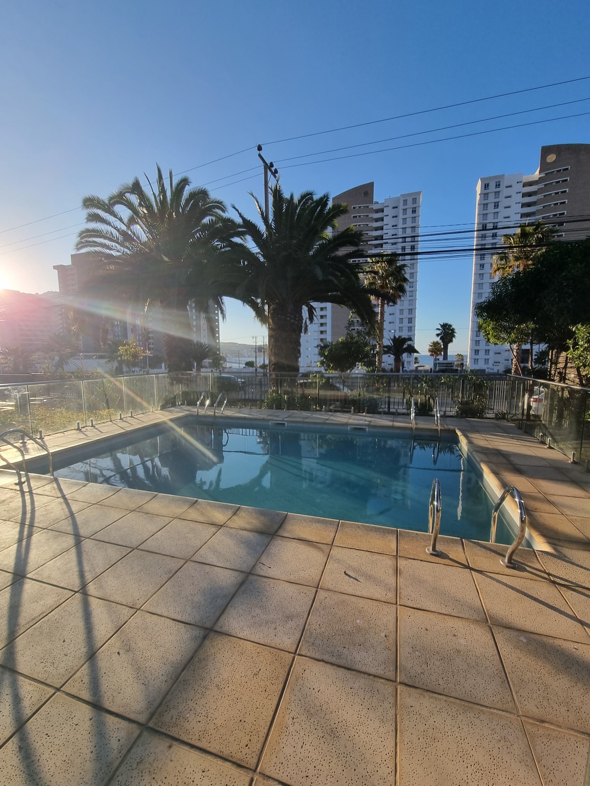 Espectacular apartamento con vista al mar en playa La Herradura,. Conexión directa a la autopista, con estacionamiento, a 3 minutos caminando de la playa, cruce seguro (puente peatonal). A pasos de restaurantes, supermercados, farmacias y otros comercios. Incluye las sillas de playa para que puedas ir cómodamente a la playa en familia. Acceso a piscina, gimnasio y quinchos dentro del recinto. *Actualmente hay una construcción al lado con ruido en horario laboral*