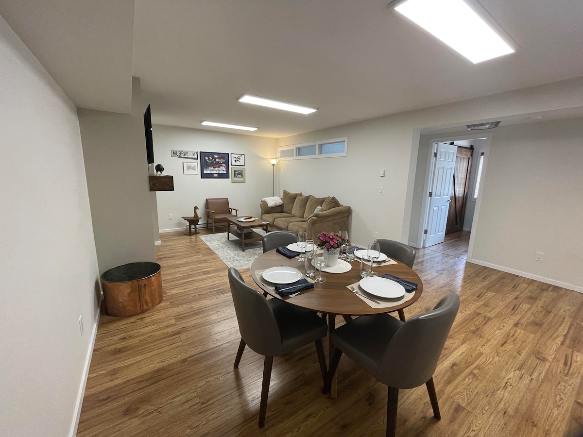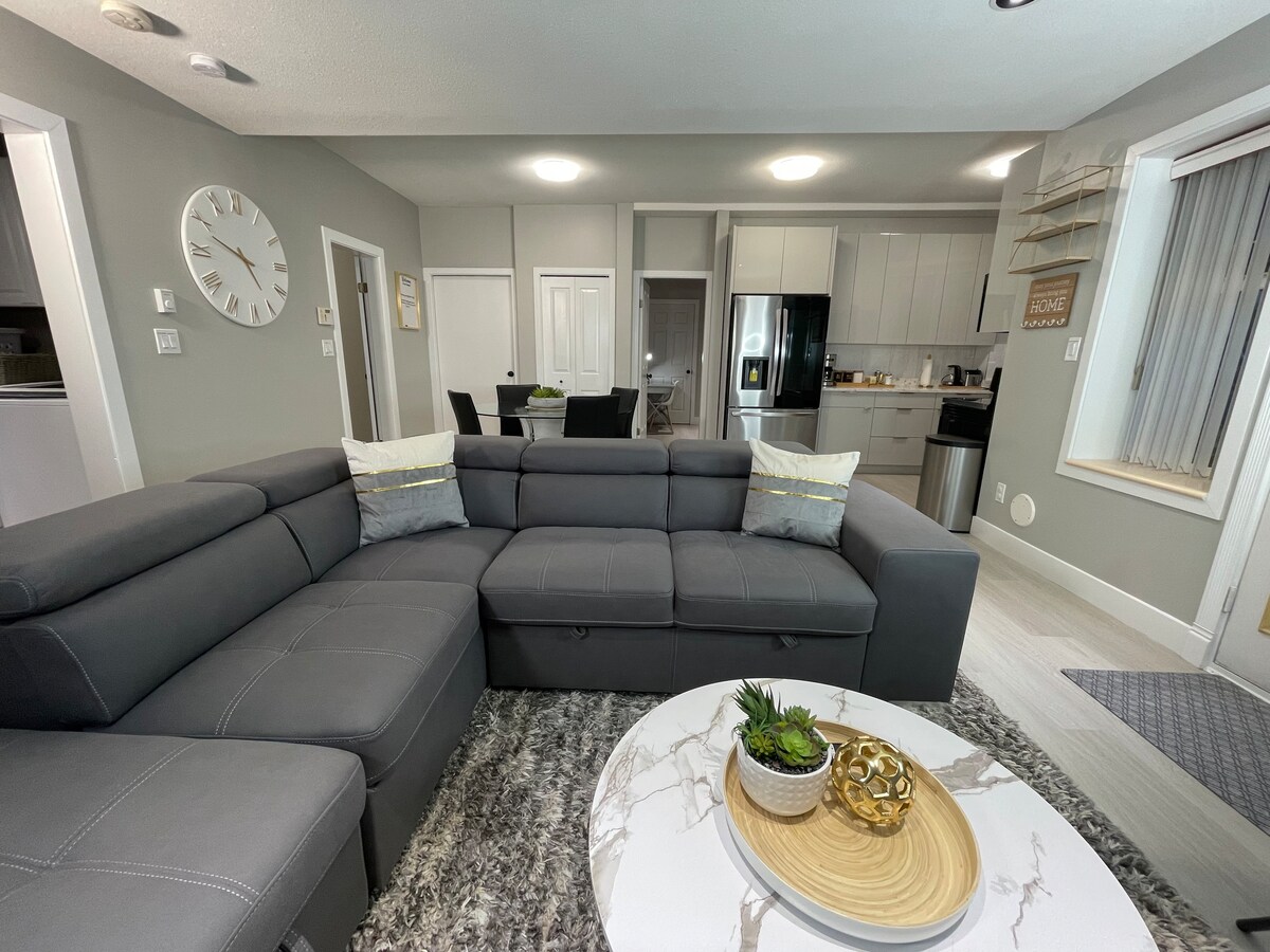 This is a private first-floor (ground-level) suite in a detached home, not an underground basement. The space is bright, well ventilated, and approximately 1,300 sq ft, ideal for short- to mid-term stays. The suite has a separate private entrance, and all areas shown in the photos are for guest use only, with no shared indoor space. The kitchen and bathroom are fully equipped. The host lives upstairs and is available if needed while respecting guest privacy.