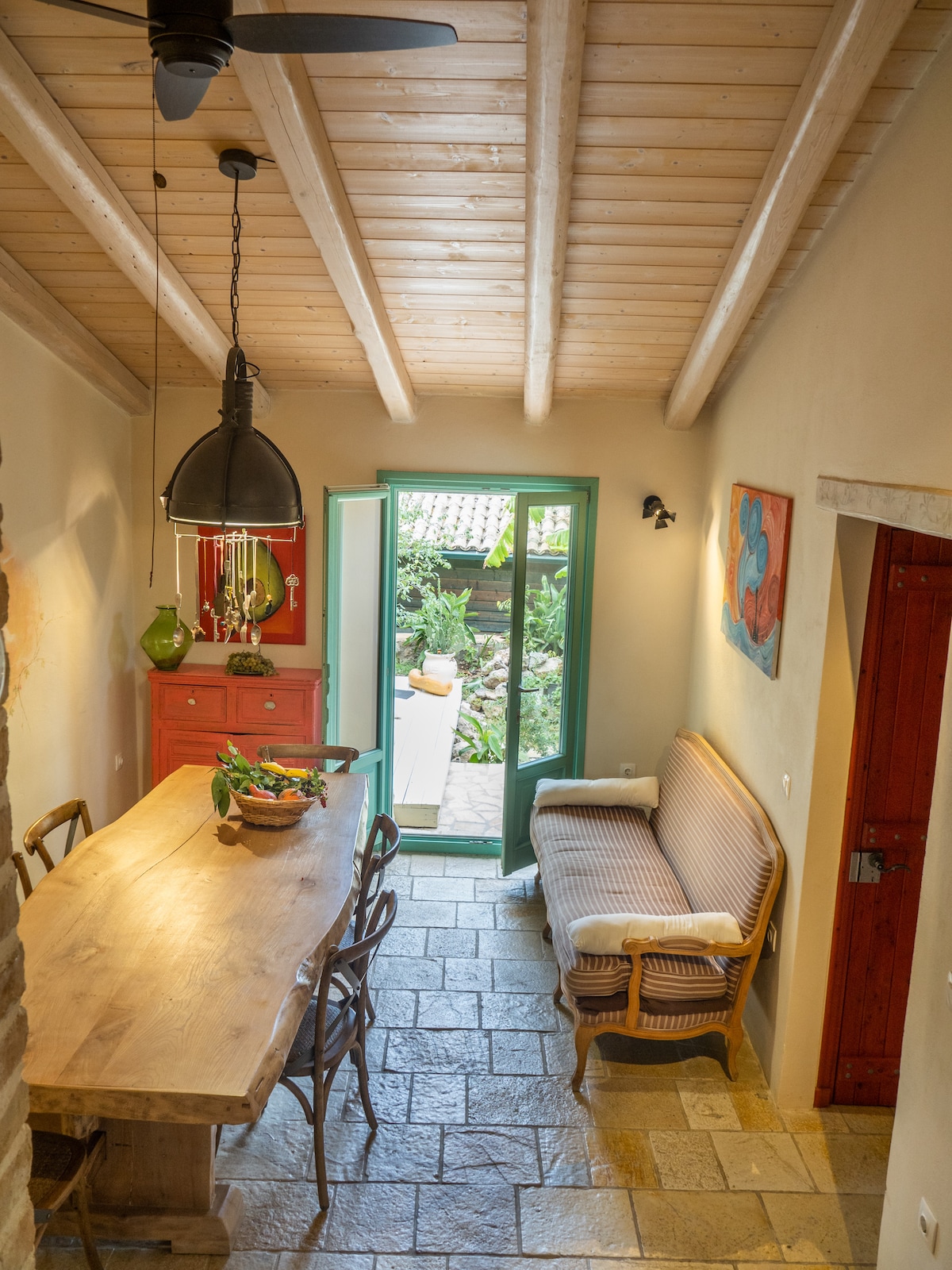 Cette maison en pierre rénovée est située dans un quartier familial du village d'Agios Mathaios. Il est assez proche de l'agora du village, où il y a des marchés, des boucheries, des tavernes et des cafétérias/bars à l'écart des pièges touristiques de Corfou.