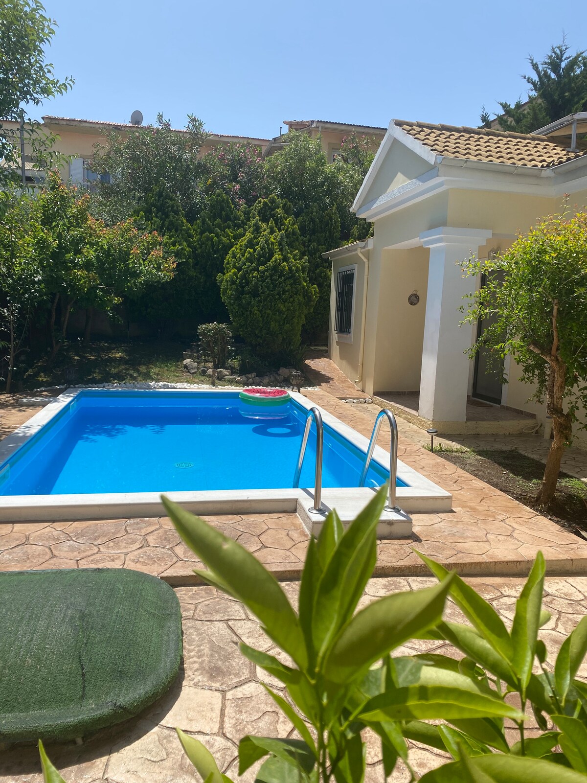 Notre maison est située à Petriti, un village de pêcheurs traditionnel du sud de Corfou. Elle est à seulement 25 minutes du lac Korission et à 35 minutes du centre de Corfou. Elle est à 100 mètres de la plage et vous pouvez trouver des magasins, des restaurants et des supérettes à quelques minutes à pied. Elle convient à une famille de cinq membres où vous pourrez profiter de votre petit-déjeuner ou de votre repas dans notre jardin. Nous avons vraiment hâte de vous accueillir dans notre maison nouvellement construite et de vous faire découvrir la beauté de la meilleure île ionienne !
