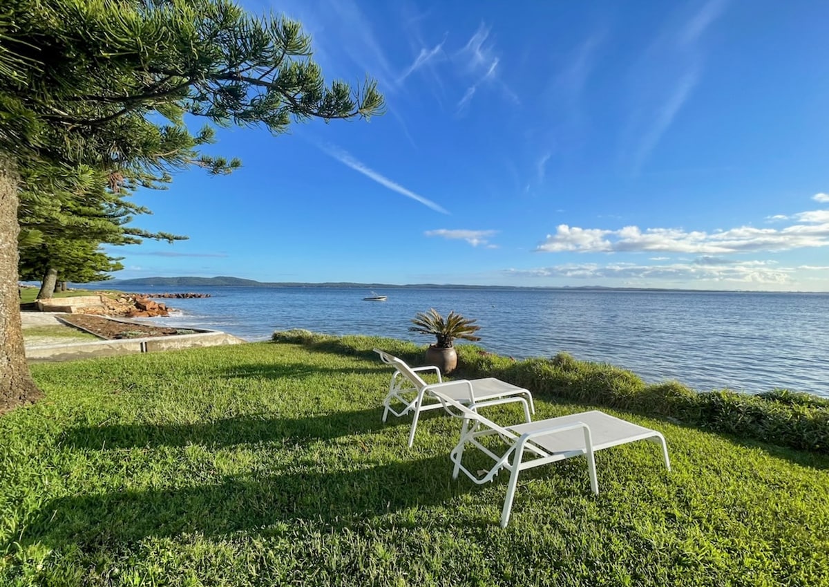 Cet appartement se trouve à seulement 600 m de la marina de Nelson Bay, des boutiques, des bars, des cafés et des restaurants. Elle offre une vue magnifique sur la plage et se trouve à seulement 2 minutes à pied de Fly Point Beach. Le salon s'ouvre sur une terrasse carrelée couverte, puis sur une pelouse. Il s'agit d'une escapade parfaite, bien équipée et joliment présentée. Linge de maison, serviettes de bain et de plage fournis et lit fait. Il y a un chantier à côté, mais le bruit est minime, voire inexistant. Lit portable disponible. Animaux bienvenus. Barbecue Weber Q disponible.