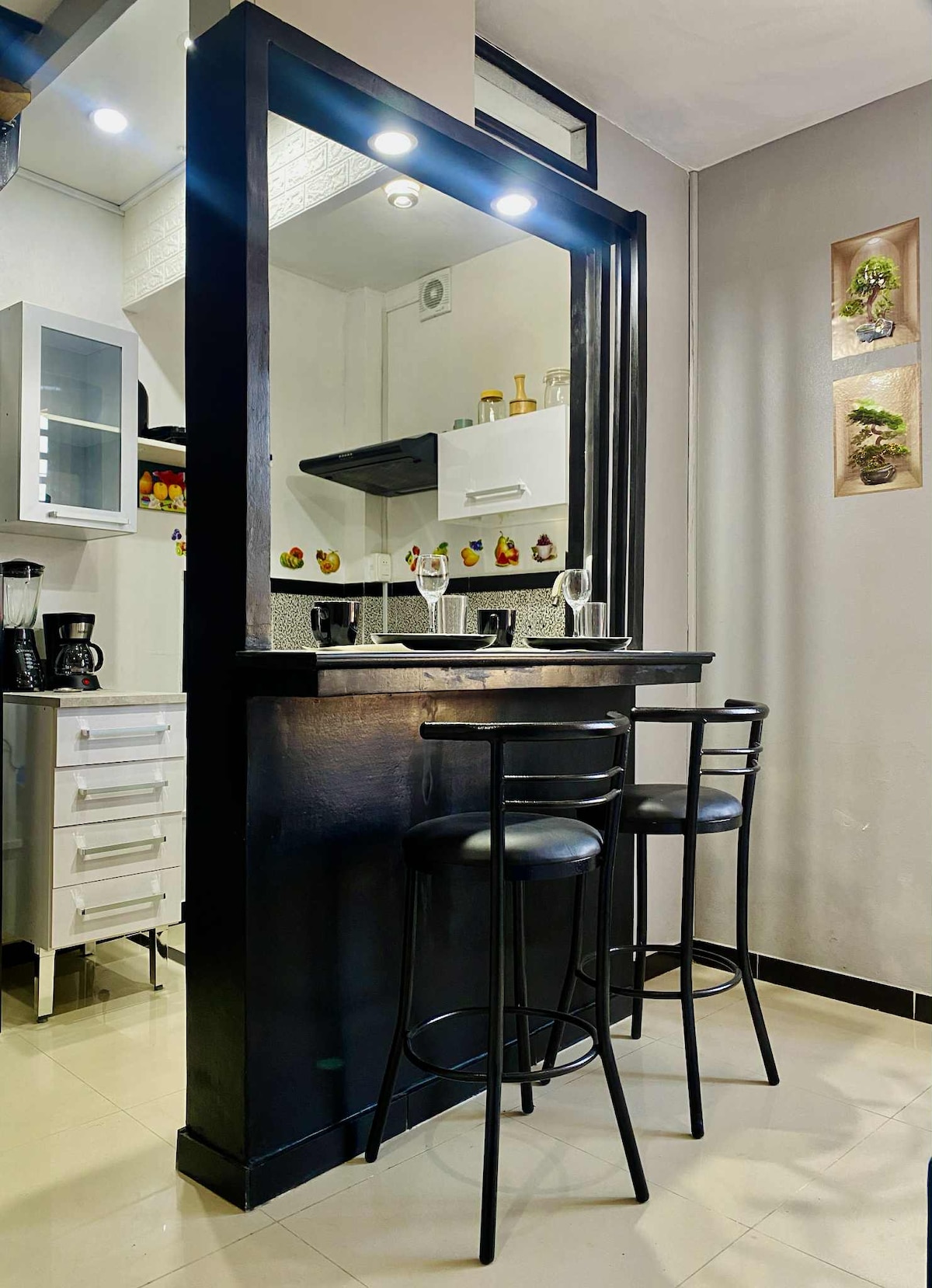 Bienvenue dans notre cosy mini appartement, idéal pour un séjour confortable et au calme ! Situé dans un quartier central de pucallpa, un espace d'une chambre entièrement équipé. Chambre : un lit double, un placard, la climatisation, un fer à repasser et une télévision. Kitchenette : avec une cuisine à 4 feux et tous les ustensiles nécessaires, canapé, réfrigérateur et table avec 2 chaises. Parfait pour les couples, les voyageurs d'affaires ou tous ceux qui recherchent un endroit calme et central.