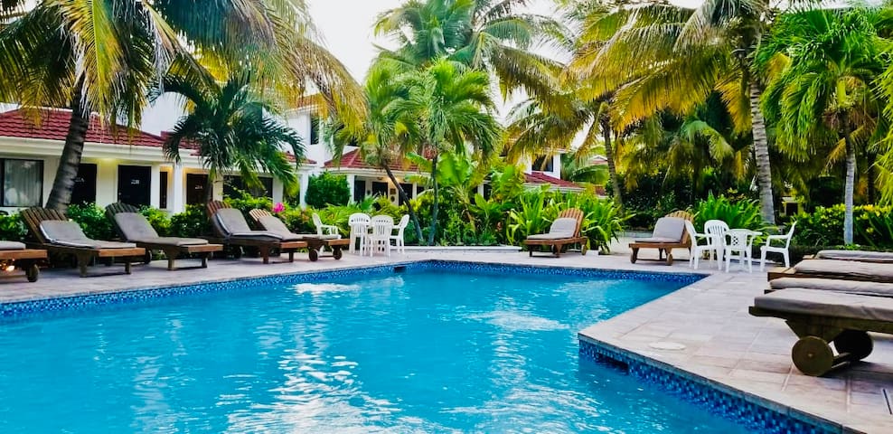 Cette magnifique casita haut de gamme de 1 lit et 1 salle de bain est située à l'intérieur de la communauté fermée de Mahogany Bay sur l'île de San Pedro. Il est entièrement équipé et comprend une kitchenette, une télévision dans la chambre et un canapé. La terrasse extérieure avec moustiquaire est parfaite pour un café et un petit-déjeuner le matin. La propriété dispose d'une charmante piscine et d'une terrasse partagées pour profiter du soleil. Vous y trouverez également un lave-linge/sèche-linge partagé gratuit à utiliser pendant votre séjour. Une place de parking privée est également fournie.