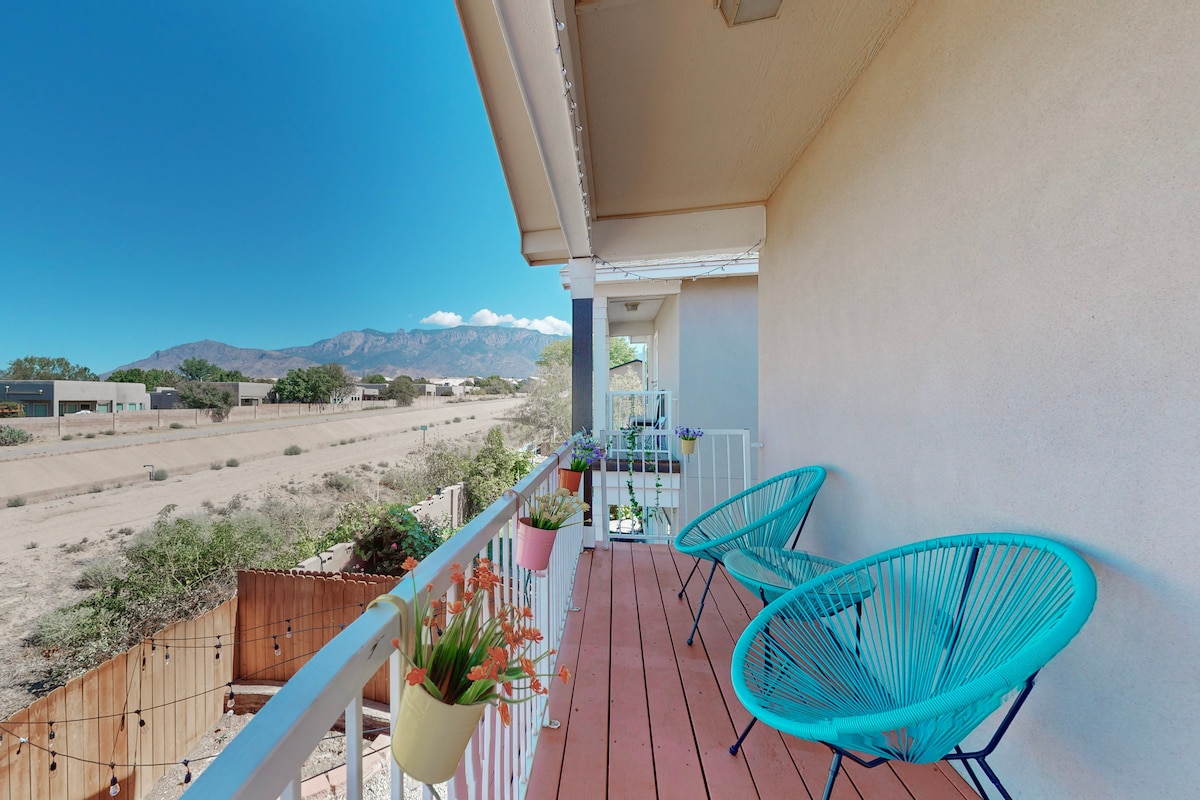 Tout se fait sur la vue ! Ce logement offre une vue sur les montagnes, les lumières de la ville et le parc de montgolfières. C'est sur une impasse tranquille au cœur de Rio Rancho. Il se trouve sur la falaise surplombant Corrales et Albuquerque. Il y a un sentier pédestre juste derrière la maison qui longe la falaise. Vous êtes à quelques pâtés de maisons de l'épicerie, des restaurants et des magasins. Le propriétaire est un agent immobilier agréé au Nouveau-Mexique