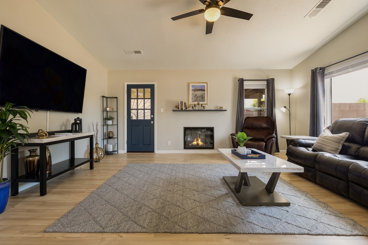 Venez séjourner, travailler ou vous amuser. Cette maison de deux chambres avec un espace de bureau dédié est moderne et confortable. Idéalement situé à Rio Rancho. À quelques minutes d'Intel, à moins de 5 miles de l'hôpital Presbyterian Rust, à environ 20 minutes du Balloon Fiesta Park. Cheminée à bois disponible ; bois fourni. Lits King Size dans les deux chambres. Cuisine entièrement équipée avec cuisinière à gaz professionnelle. Foyer au gaz, chaises longues et balançoire de porche disponibles dans la cour arrière accueillante.
