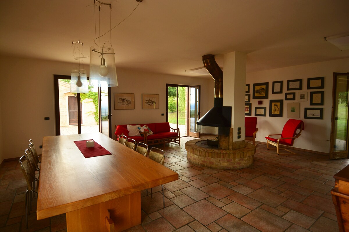 La ferme de campagne, entourée d’oliviers, de chênes séculaires sera tout pour vous à seulement 25 minutes de la mer et à une heure des pistes de ski de Sassotetto. Idéal pour les couples ou les familles à la recherche de détente, notre maison est plongée dans un silence d’antan. Vous êtes à 10 minutes en voiture de Macerata et à une demi-heure des plages. L’espace sera à votre disposition exclusive. Nous disposons d’un Home Cinéma avec système HiFi. Possibilité de profiter du four à bois sur accord préalable.