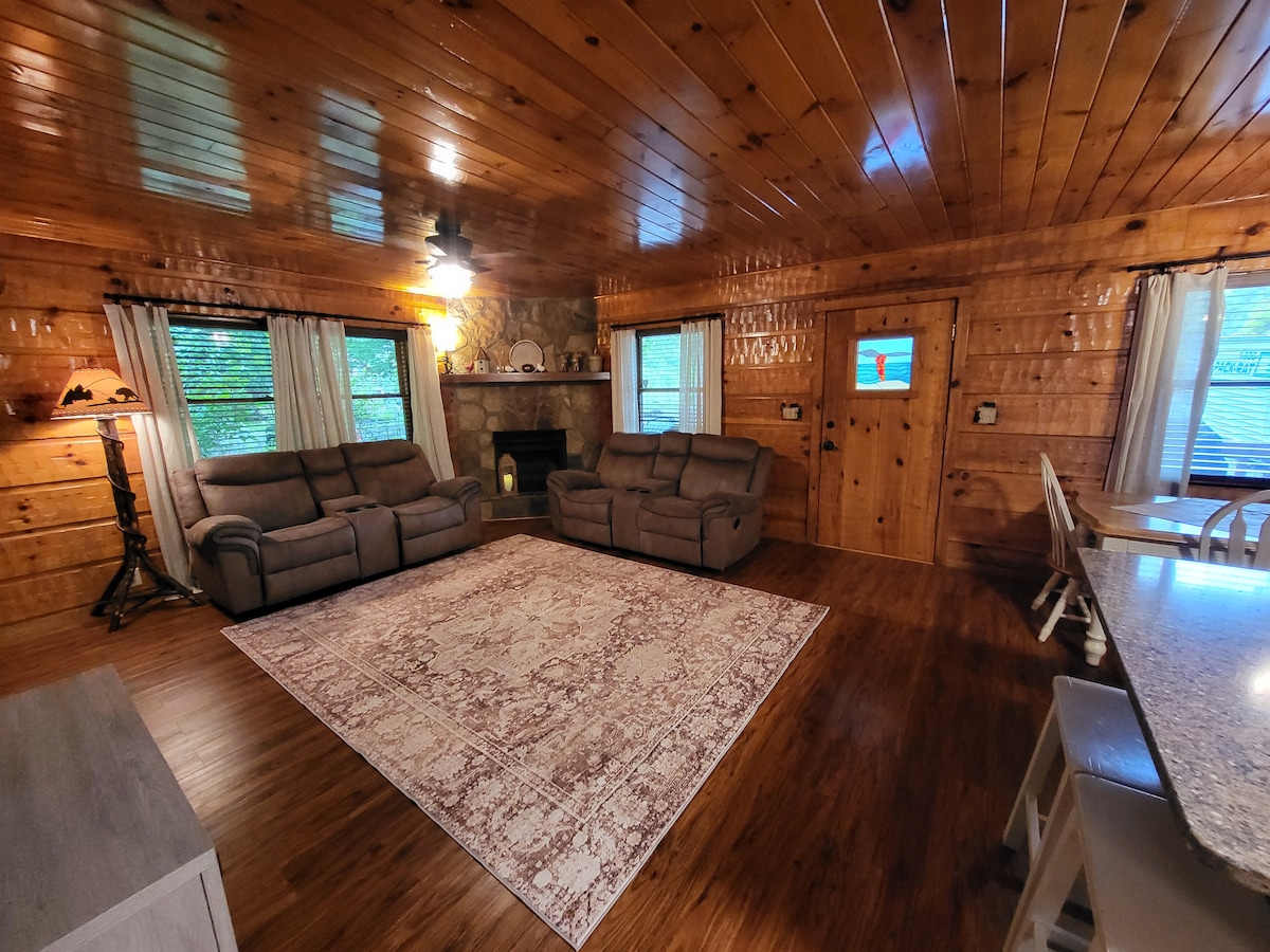 Situé à seulement 3 miles du centre-ville de Gatlinburg. Ce magnifique chalet de 2 chambres rénové peut accueillir jusqu'à 6 personnes. 2 chambres complètes avec des lits Queen Size et un canapé-lit gigogne. De nouvelles téléviseurs intelligents, un décor boisé moderne et une cheminée à gaz font de ce chalet confortable l'escapade idéale pour un week-end à explorer les montagnes Smoky et à profiter des divertissements de Pigeon Forge. Le chalet le plus privé de sa rue, cette location est entourée par la nature.