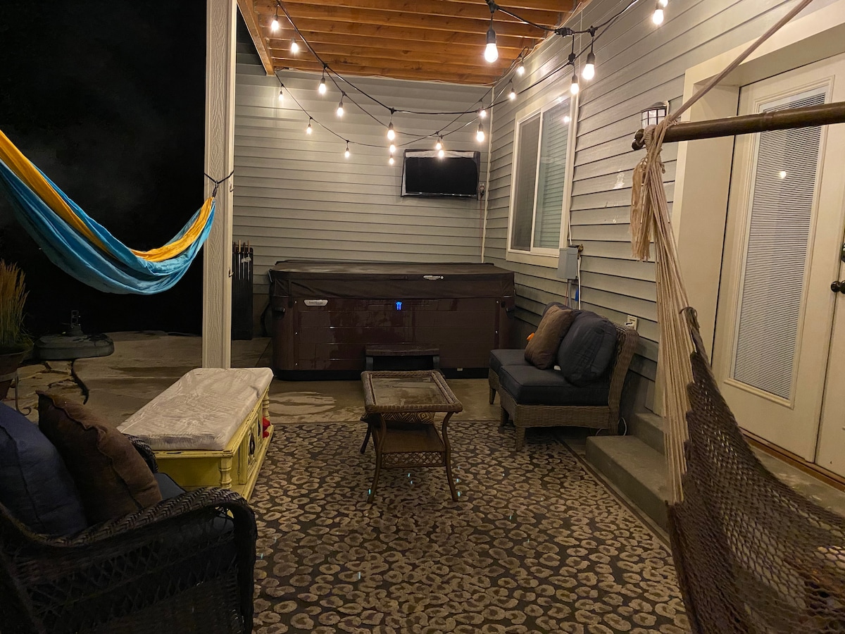 Profitez de votre propre entrée privée (à l'arrière de la maison) au sous-sol complet avec vue. Grande cour ! Plongez dans votre propre jacuzzi privé, profitez de parties de billard et au ping-pong. Le verrouillage des touches du pavé tactile vous permet d'entrer dans les lieux à tout moment. Cuisine, salon, buanderie et jusqu'à 3 chambres privées. Le niveau principal est occupé par le propriétaire. Le loft ou niveau supérieur est également une location répertoriée (voir autres propriétés). VEUILLEZ FOURNIR LE NOMBRE CORRECT de voyageurs. Le prix est ajusté en fonction de l'occupation. Merci.