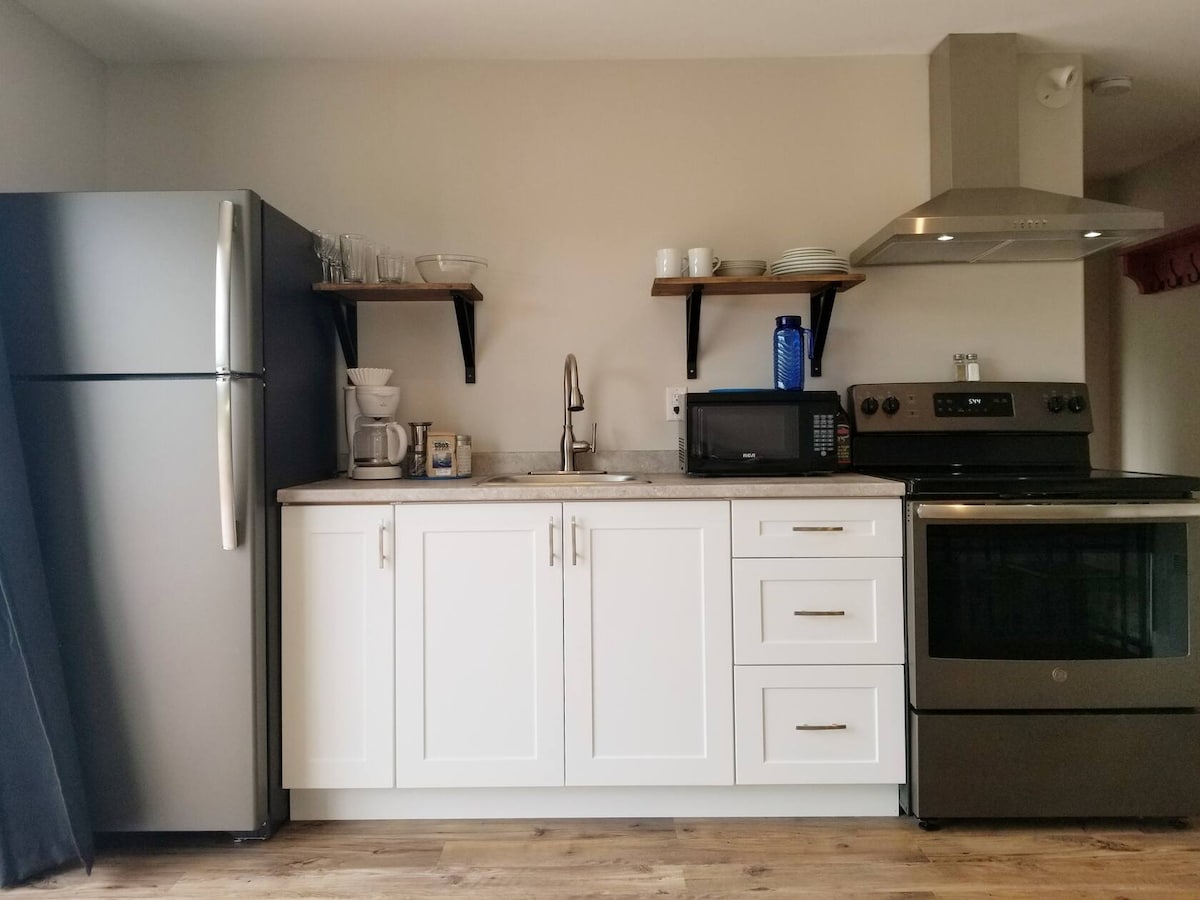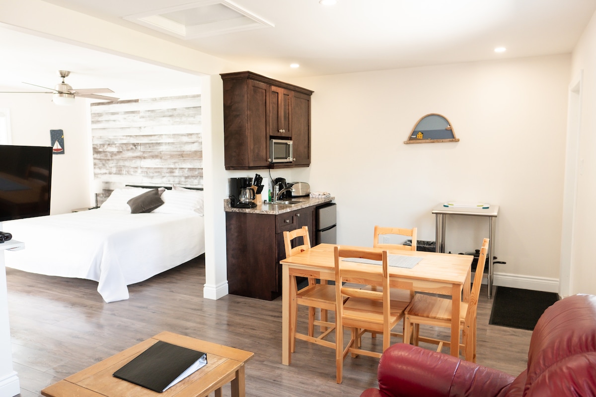 Cette suite privée lumineuse et spacieuse nouvellement aménagée est située sur la péninsule du Grand Nord de Terre-Neuve, nichée dans la pittoresque communauté de Cow Head, dans le parc national du Gros-Morne. Cette suite idéalement située contient une salle de bain complète, une kitchenette, une chambre et un espace de vie confortable et est située à quelques minutes de la plage de Shallow Bay, du théâtre Gros Morne et des excursions en bateau Western Brook. Veuillez noter qu'il y a 5 suites dans ce bâtiment, avec un porche et un foyer communs.