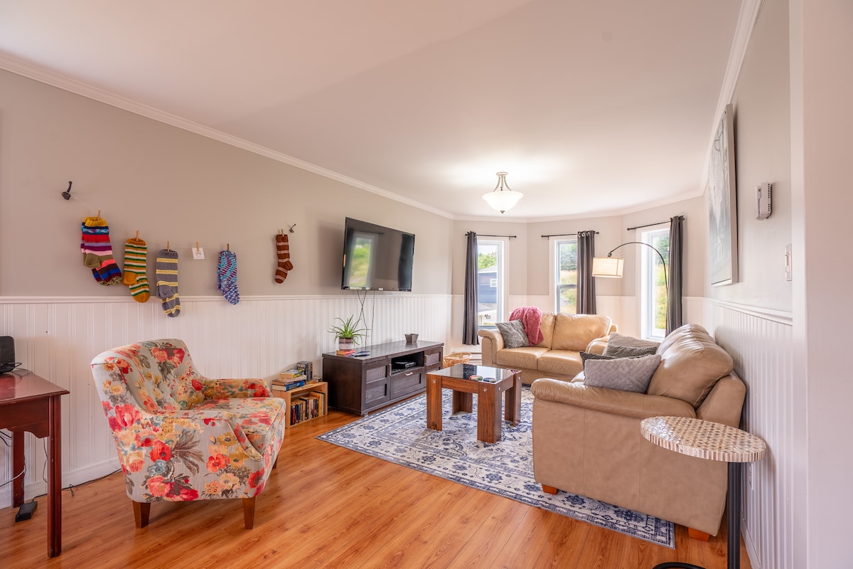 Notre loft en bord de mer unique et magnifiquement conçu, offre sans doute la plus belle vue de Terre-Neuve ; avec une cour complète face à l'océan, des observations de baleines en saison (!!), des activités familiales à proximité, des restaurants et des salles de concert. Vous apprécierez notre logement pour les couchers de soleil, les promenades sur la plage et les feux de joie, la proximité de tout, les sentiers de randonnée à proximité et le bateau-taxi qui permet d'accéder au côté sud du parc national. Notre logement est parfait pour les couples, les voyageurs d'affaires, les explorateurs en solo et les amateurs d'aventure en toutes saisons.