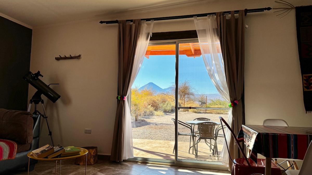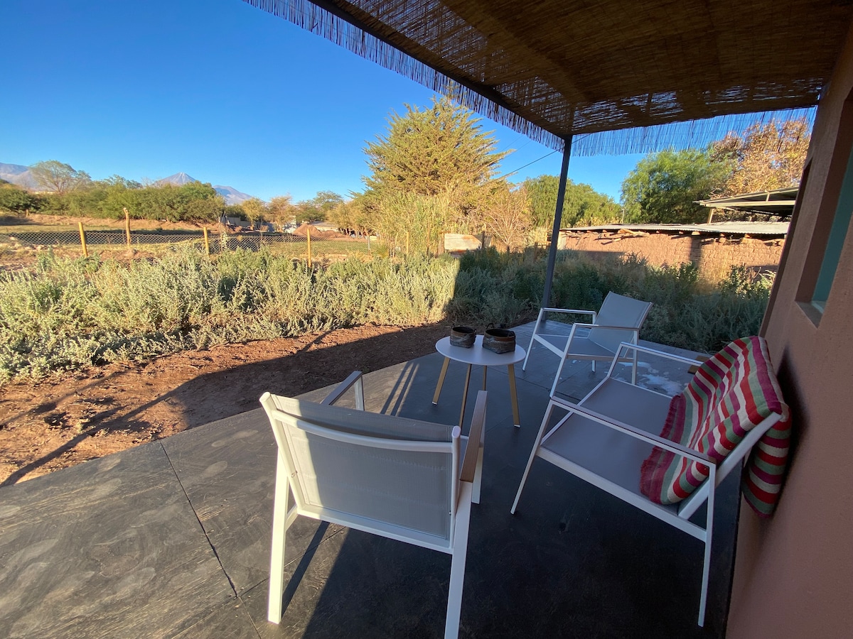 Chalet indépendant entièrement équipé pour un excellent séjour, très proche du centre du village et situé dans un endroit avec beaucoup de végétation. L'endroit est très calme et la nuit, vous pouvez apprécier le ciel étoilé du désert d'Atacama