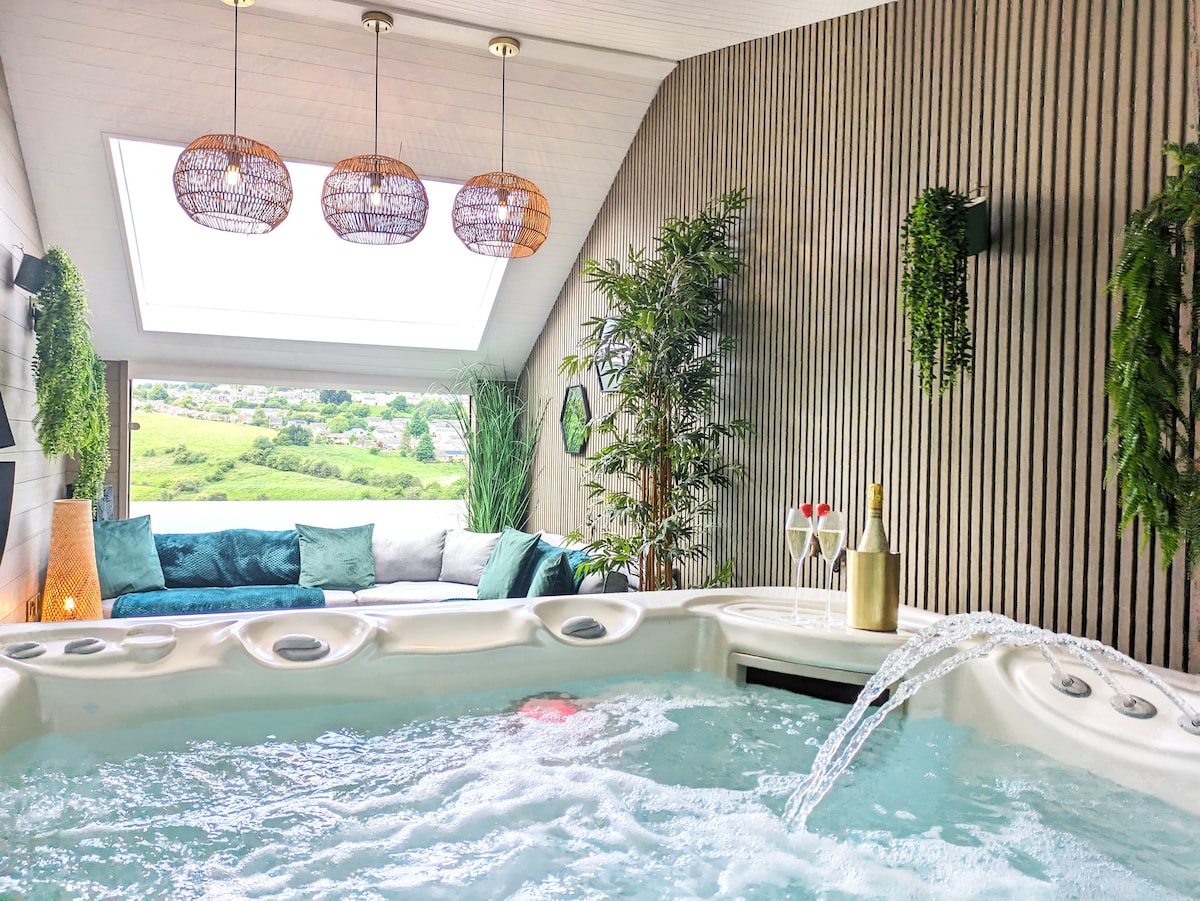 A design-led space and *NEWLY* refurbished apartment with it's own very private hot tub and luxury garden room, is located near the Worth Valley Steam Railway with stunning views of the hills. It is a five minute drive from the historic village of Haworth and is a perfect location for visiting the Brontë parsonage where the Brontë sisters lived and the moors which inspired their writing, the Yorkshire Dales, Ilkley and Saltaire. There is Netflix and a smart TV in the bedroom and living room.