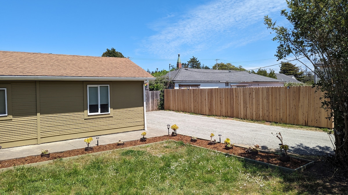Profitez d'un chalet élégant mais confortable qui a plus de 100 ans. Entièrement rénové avec la plupart des commodités modernes, dans ce logement situé au centre-ville. Quartier calme à proximité de tout. Épiceries, restaurants, magasins, Beach Front Park, le phare et le port. Tout est accessible à pied. C'est l'un des plus anciens quartiers de Crescent City avec des maisons de style artisanal et victorien. Charmant. Apportez vos vélos, nous avons de superbes pistes cyclables.