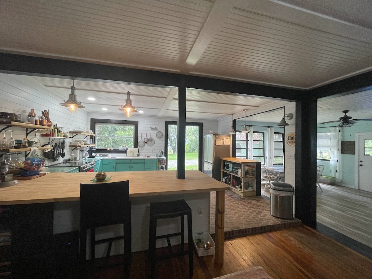 L'Ollie Vee est situé dans un cul-de-sac calme de 4 maisons. Des arbres dégoulinant de mousse espagnole, des dindes sauvages errantes, une paire d'aigles à proximité et une vue sur le lac Crescent complètent l'ambiance. Le cri « miaou » des paons locaux se fait entendre dans tout le quartier... avec quelques-uns qui se perchent parfois dans les arbres de la cour. La maison est située à deux pas des restaurants et de la rampe de mise à l'eau de la ville. Vous cherchez un endroit paisible ? L'Ollie Vee est fait pour vous.