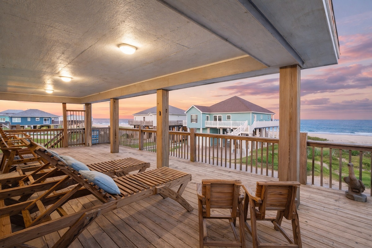 Wake up to uninterrupted ocean views, fall asleep to the sound of waves, and spend your days just steps from the sand. Welcome to Sanddrift Dreamin, a beautifully designed beachfront home in Crystal Beach where comfort, space, and coastal luxury come together for the perfect getaway. This isn’t just a beach house—it’s your front-row seat to the Gulf, from morning coffee on the balcony to evenings in the hot tub under the stars, designed for pure relaxation. Ideal for families and groups!