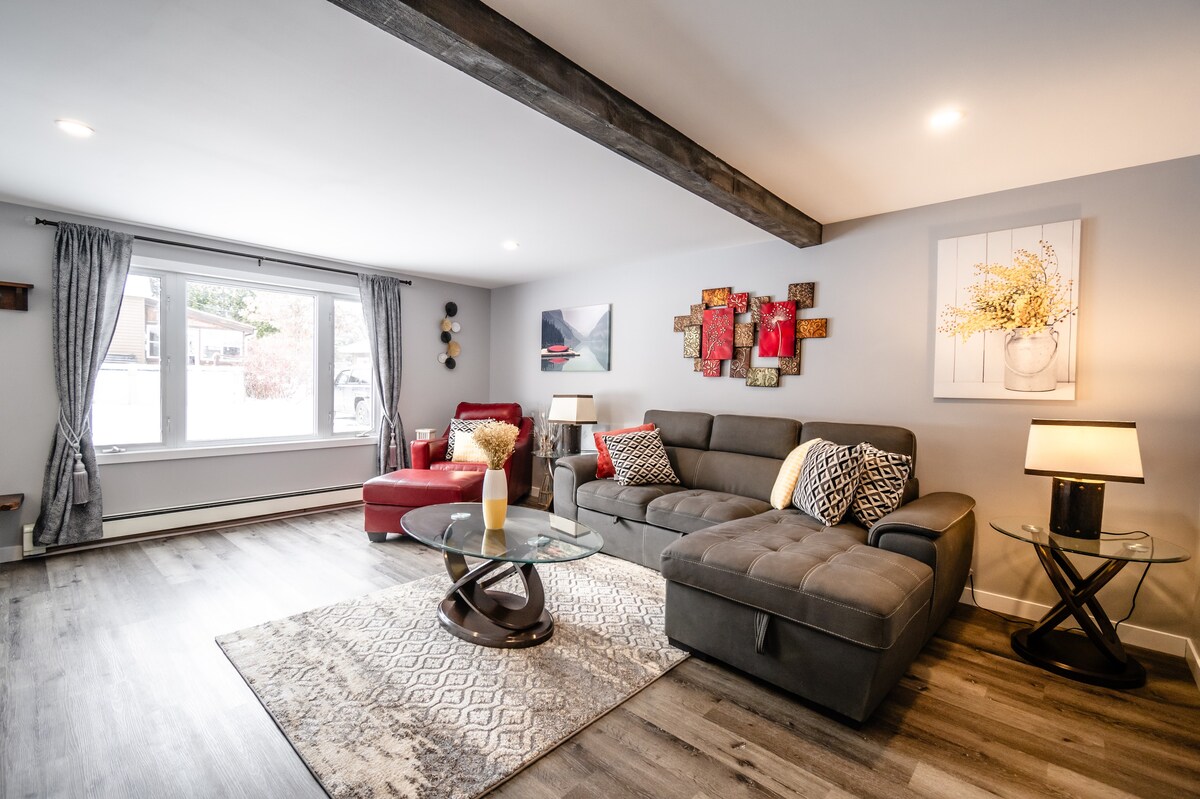Votre famille sera proche de tout lorsque vous séjournerez dans ce logement situé au centre. À distance de marche des plages au bord de l'eau et des commerces et restaurants du centre-ville. Cet appartement en sous-sol est situé dans un triplex qui a été entièrement rénové tout en conservant le charme de cette maison du siècle. L'appartement dispose de sa propre sortie et entrée, d'un concept ouvert lumineux et élégant.