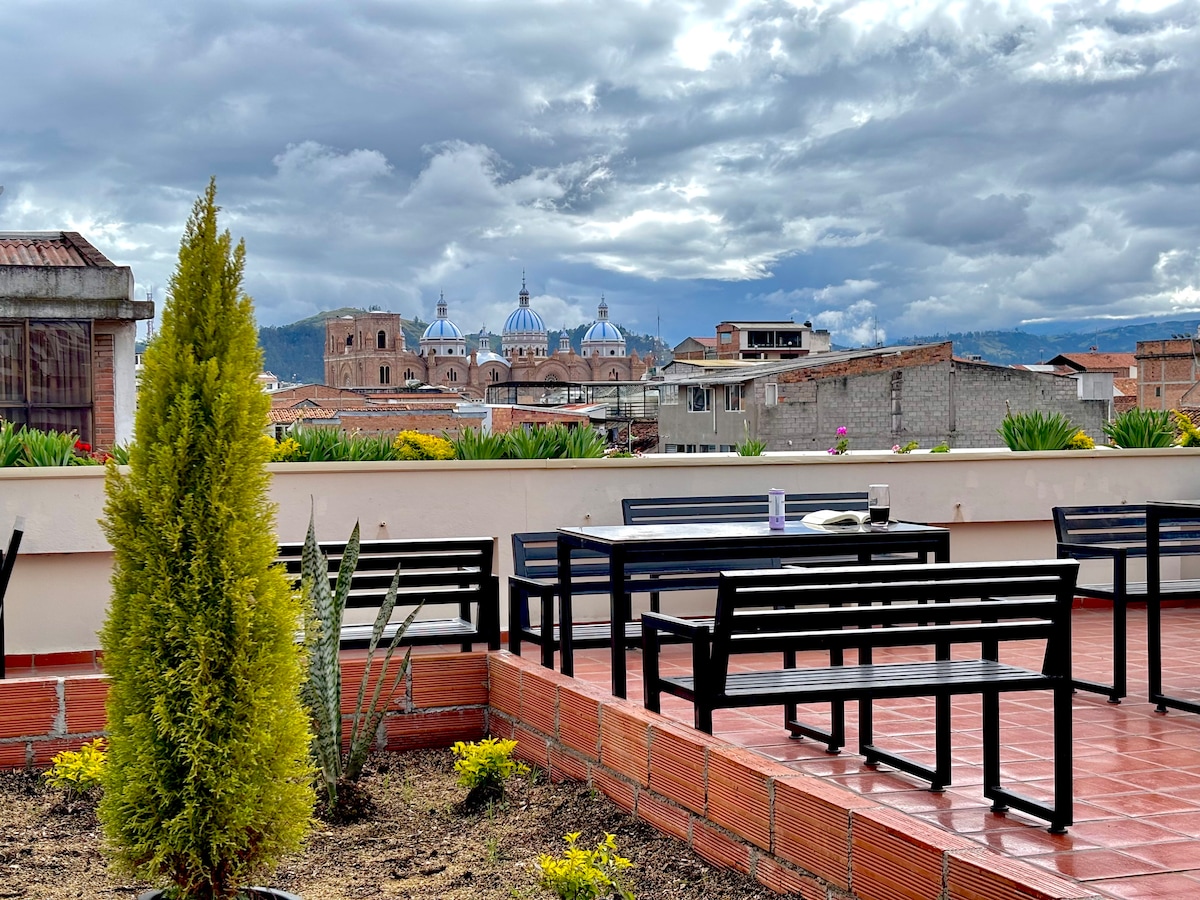 Bienvenue dans notre maison au cœur de la ville ! Suite Pumapungo, est située dans le centre historique avec une limite dans la partie moderne de la ville. Plongez dans l'histoire de notre maison tout en vous relaxant dans la cour intérieure, un espace calme et serein au milieu de l'agitation de la ville. Et lorsque vous souhaitez contempler les vues panoramiques, notre terrasse à usage commun vous captivera par la beauté des environs. Suite indépendante, entièrement équipée pour les longs séjours.