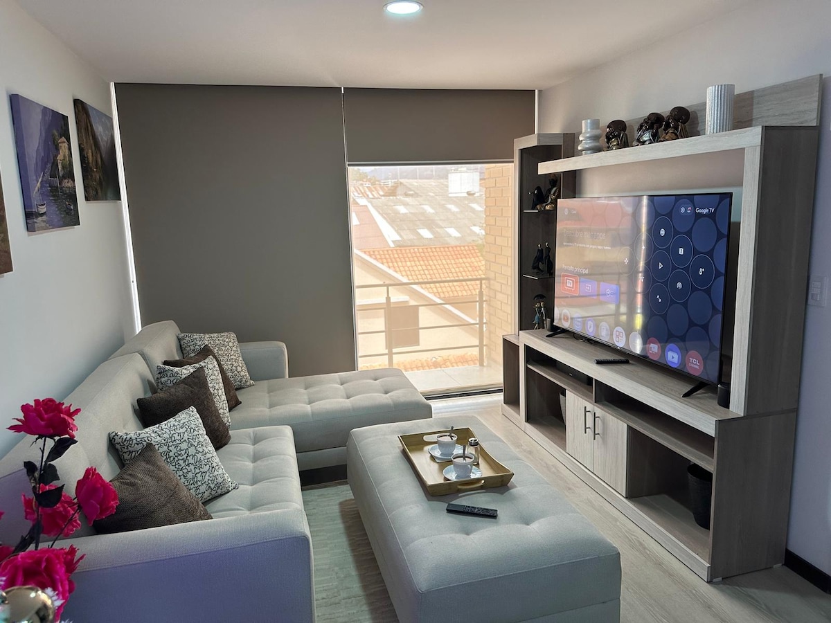 Bienvenidos a una elegante y moderna suite, un lugar diseñado para que te relajes, trabajes o disfrutes tu estadía con total comodidad. Ubicación estratégica cerca de restaurantes, tiendas, centros comerciales y lugares de interés. Reserva ahora en Airbnb y vive una experiencia muy confortable en un lugar tranquilo, seguro y cerca del centro histórico. Incluye: cama y sofá cama muy cómodas, Wifi de alta velocidad, dos TV Smart en sala y dormitorio, comedor y cocina totalmente equipada.