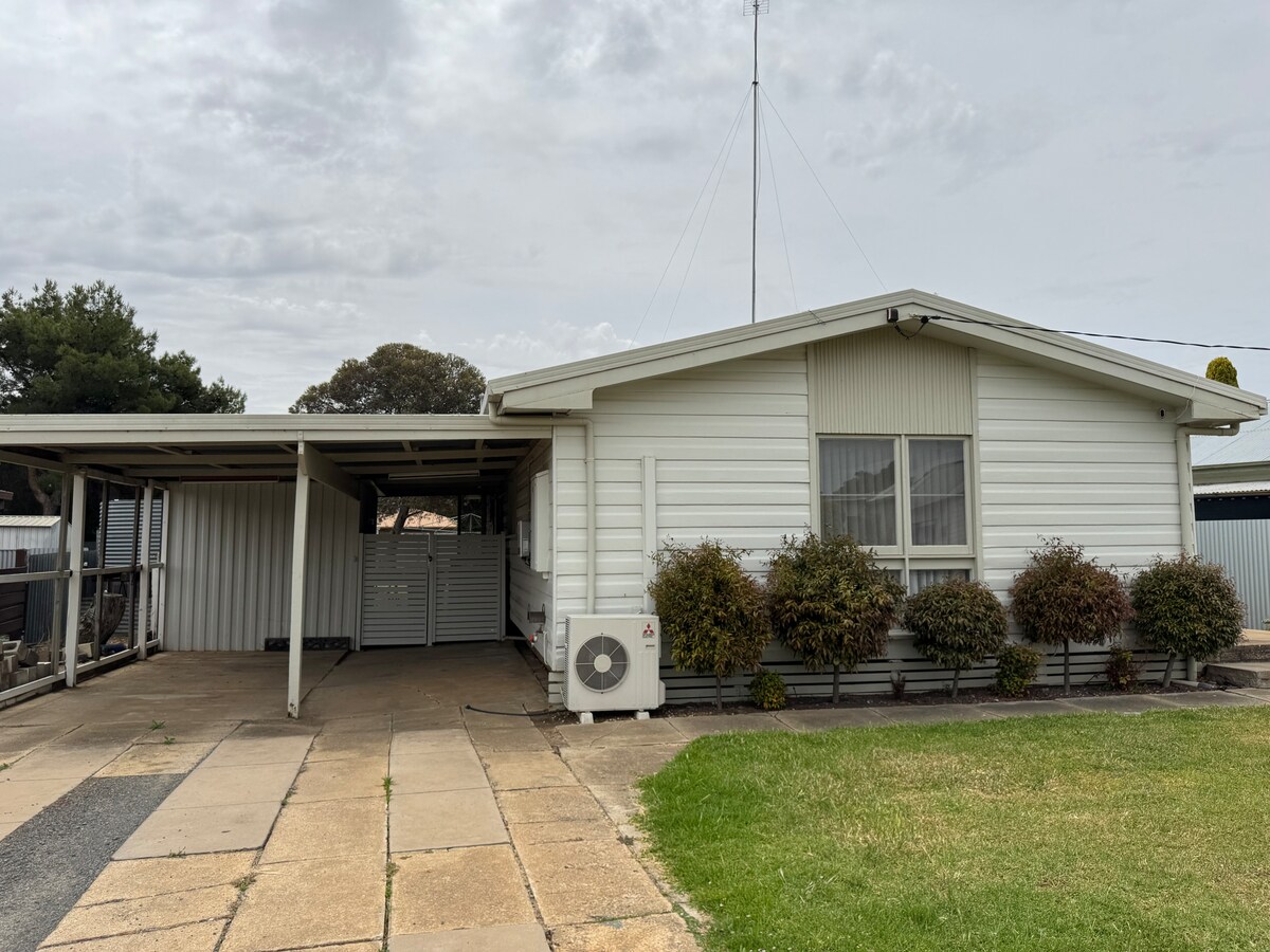 Détendez-vous avec toute la famille à Quambatook Victoria. Il y a de la place pour 6 personnes maximum avec un lit Queen Size, un lit double et 2 lits simples. Une cuisine et une salle de bains rénovées, des toilettes intérieures et une buanderie. À l'arrivée, le réfrigérateur contiendra quelques produits de base. Il y a une cuisinière à gaz, un micro-ondes et un four électrique pour cuisiner ! Telstra Tv est disponible via votre point d'accès mobile pour Netflix, Foxtel, etc. Il y a des jeux de société et une sélection de DVD et de CD et un large éventail de livres.