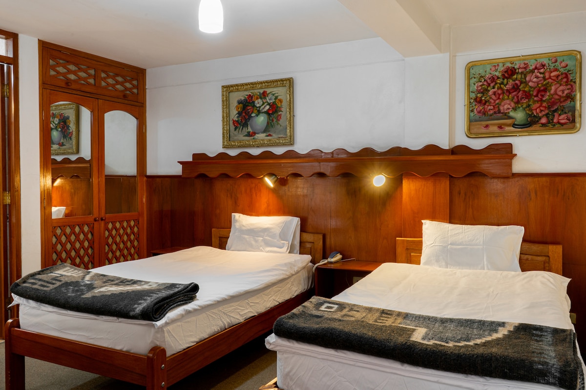 Profitez d'une chambre polyvalente pour deux personnes, équipée de deux lits simples qui peuvent également être réunis en un lit double sur demande. Parfaite pour les couples, les amis ou les compagnons de voyage qui recherchent confort et tranquillité à Ollantaytambo. Elle dispose d'une salle de bain privée avec douche et eau chaude 24h/24 et 7j/7, d'une connexion Wi-Fi haut débit, de serviettes propres, de draps inclus et d'une excellente ventilation naturelle. Nos installations sont neuves et nous avons tout préparé pour un séjour sans souci.