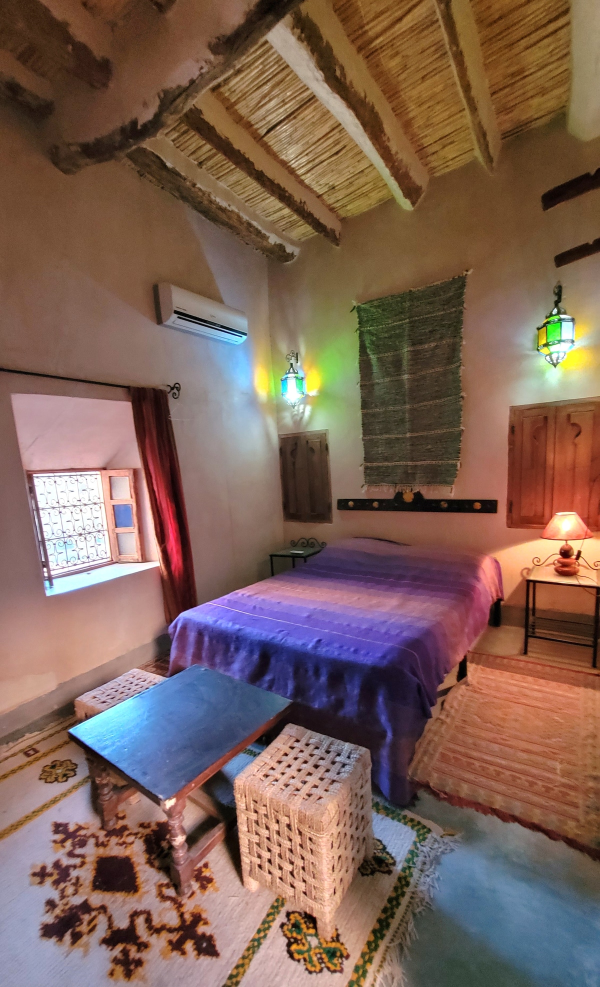 Notre hôtel se trouve à l'intérieur du ancien Kasbah avec ses vieux bâtiments entre jardins et près de la rivière. L'auberge vous offre aussi plusieurs vues belles de les terrasses si vous voulez rester on jour à la maison. Le restaurant fait des plats délicieux avec des produits bio et locale. Le chambre affiche une décoration personnalisée de style marocain. Elle dispose d’une salle de bains privative, une télévision écran plat, Climatisation, Accès Internet WIFI.