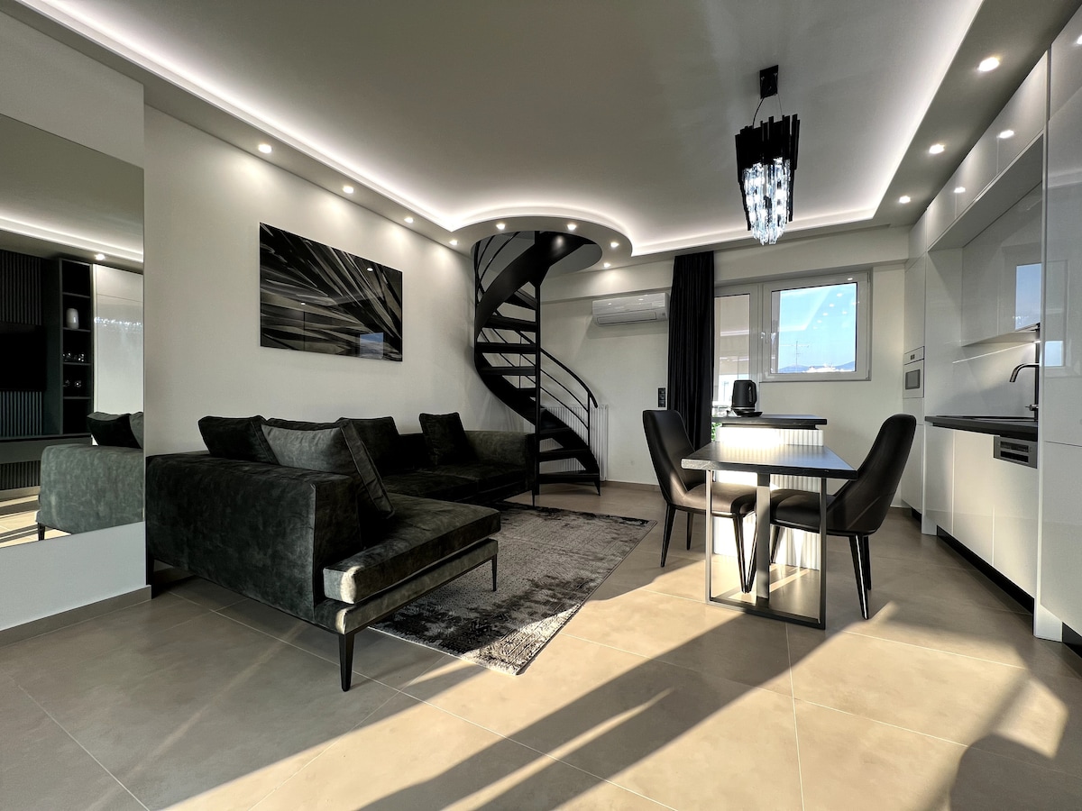 Deux étages spacieux avec vue sur la Maisonette Acropolis. À côté du temple de Zeus, le centre historique, la zone de l'Acropole. Le penthouse offre une vue sur l'acropole, la ville, le parc et la mer. Sur la terrasse privée (35m), vous pourrez bronzer, vous détendre dans le jacuzzi ou prendre une douche juste sous le ciel ouvert. Le jacuzzi est directement relié à l'eau chaude, ce qui vous permettra d'ajuster la température de l'eau confortable à tout moment. Le soir, vous profiterez d'une vue fantastique sur l'acropole et la mer