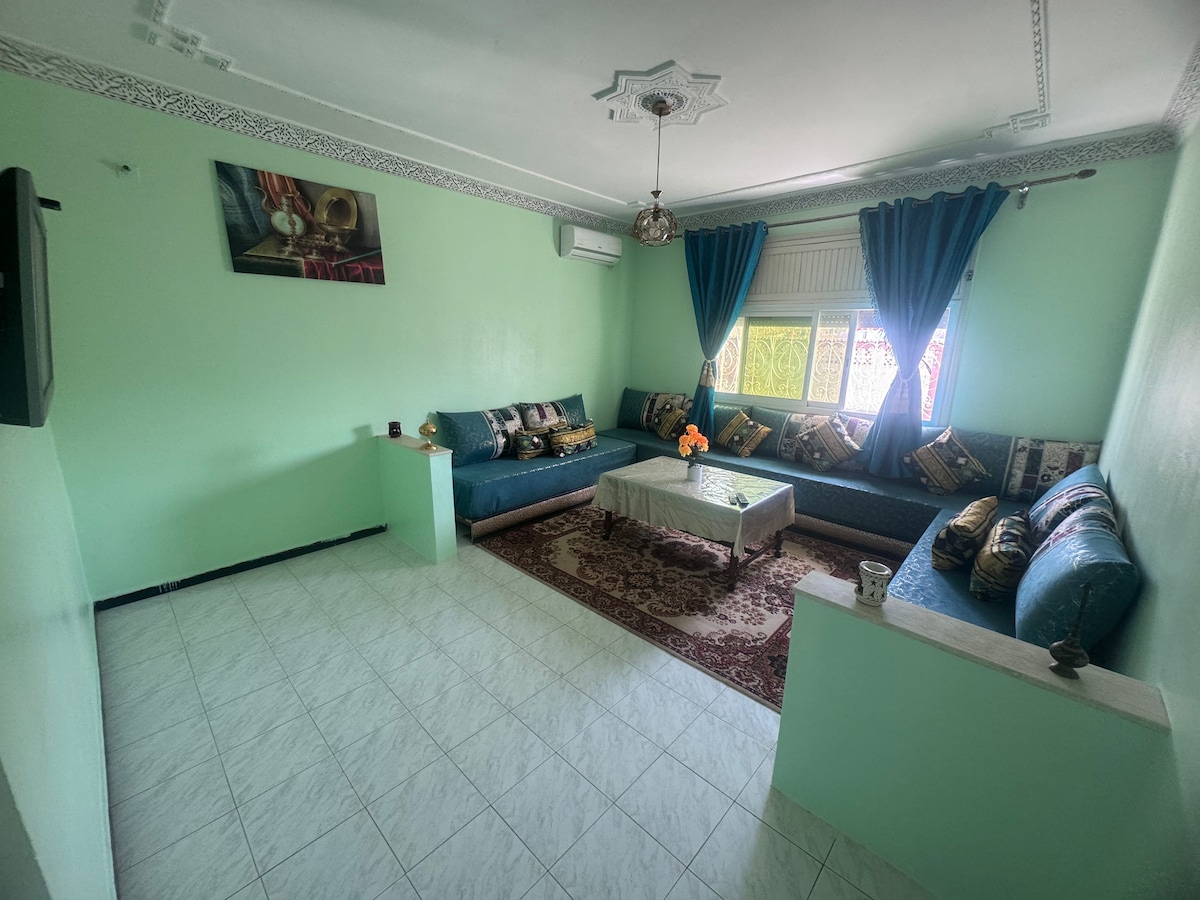 Appartement de 100 m², idéalement situé sur boulevard Mohammed V, en plein cœur de Khemisset. Parfait pour les familles, cet appart comprend 2 chambres a coucher, 2 salons, une salle à manger, une cuisine entièrement équipée et une salle de bain. Profitez d'une smart TV et d'Internet haut débit. L'immeuble est calme et sécurisé, avec un café au rez-de-chaussée et une salle de jeux avec tables de billard et Snooker et stations PS5 de jeux pour les enfants. Parking securisé et gratuit dispo.