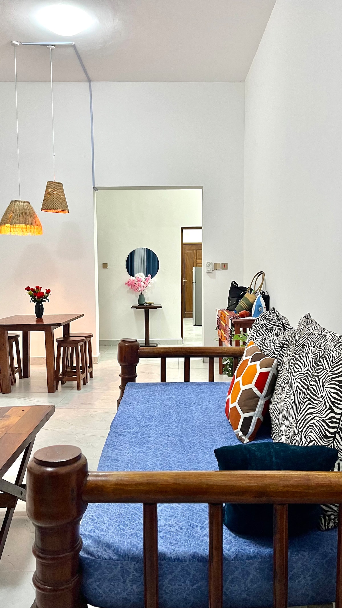 Experience our vibrant Afro-Bohemian villa in Malindi—a 3-bedroom retreat with 6 beds in a gated community. Enjoy a private pool, spacious patio, and a lush garden. Each ensuite room features AC and fans, with a master suite adjoining a children’s room. Relax in the chillout lounge with a 55" smart TV and strong Wi-Fi. A fully equipped kitchen, indoor/outdoor dining, free parking, and 24/7 solar-backed power complete your perfect getaway. Only 5 minutes from town and 15 minutes from the airport.