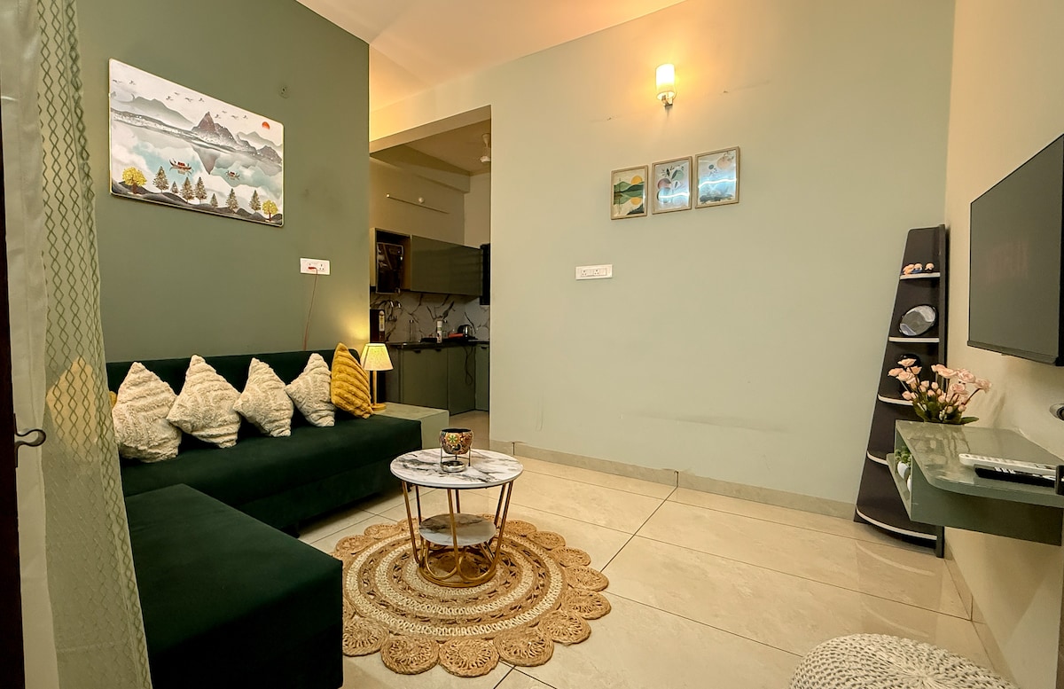 Séjour moderne 1 BHK | Familles, couples bienvenus.