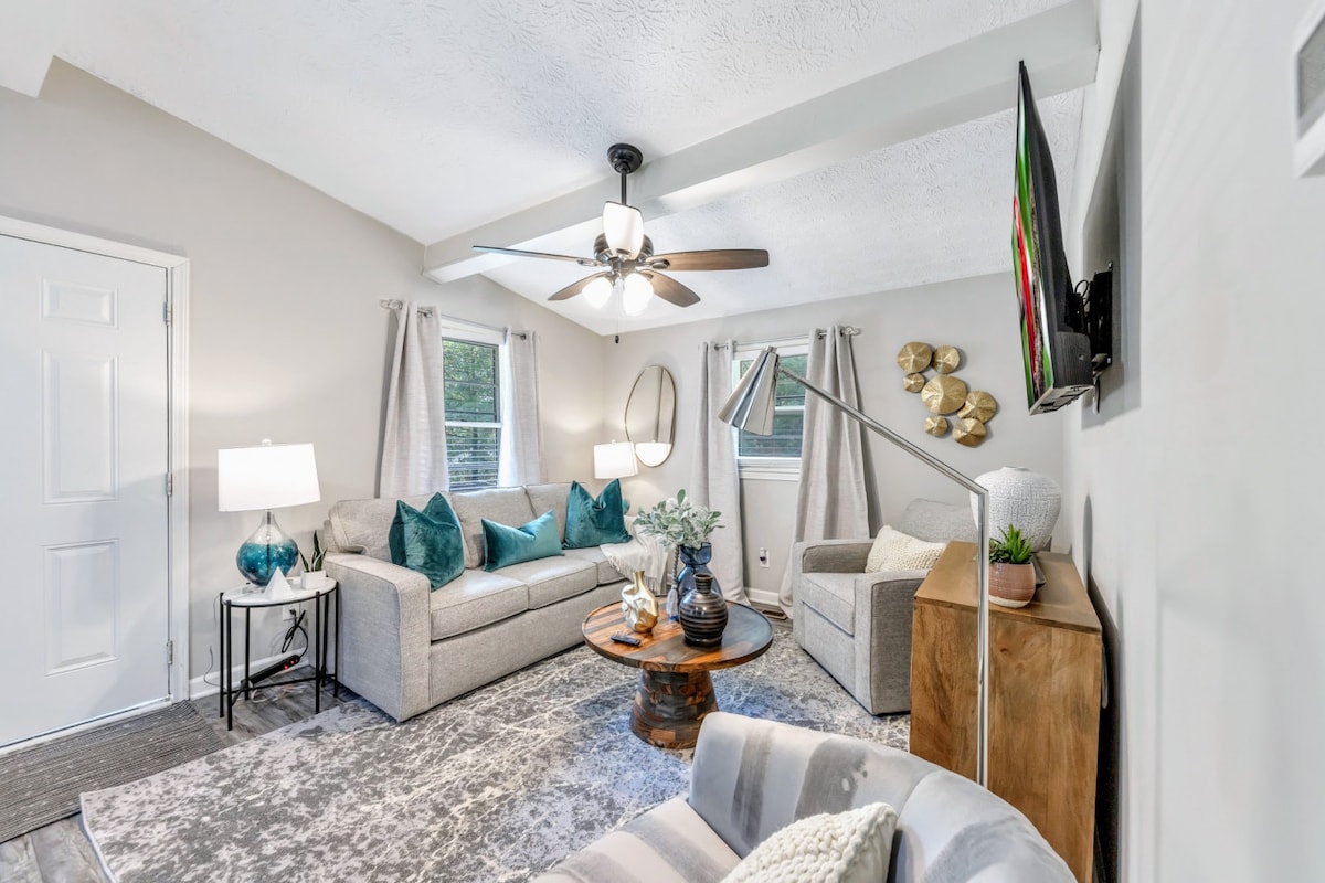 • Prime Location: 10–15 mins to downtown Hiram, Dallas, Powder Springs & Douglasville • Stocked Kitchen: Cookware, appliances, starter coffee & tea • Cozy Setup: King bed, blackout shades, 65" smart TV • Private Entry: Stylish basement suite with no shared spaces • Amenities: Towels, Wi-Fi, washer/dryer • Easy Check-In: Smart lock, private parking for two vehicles