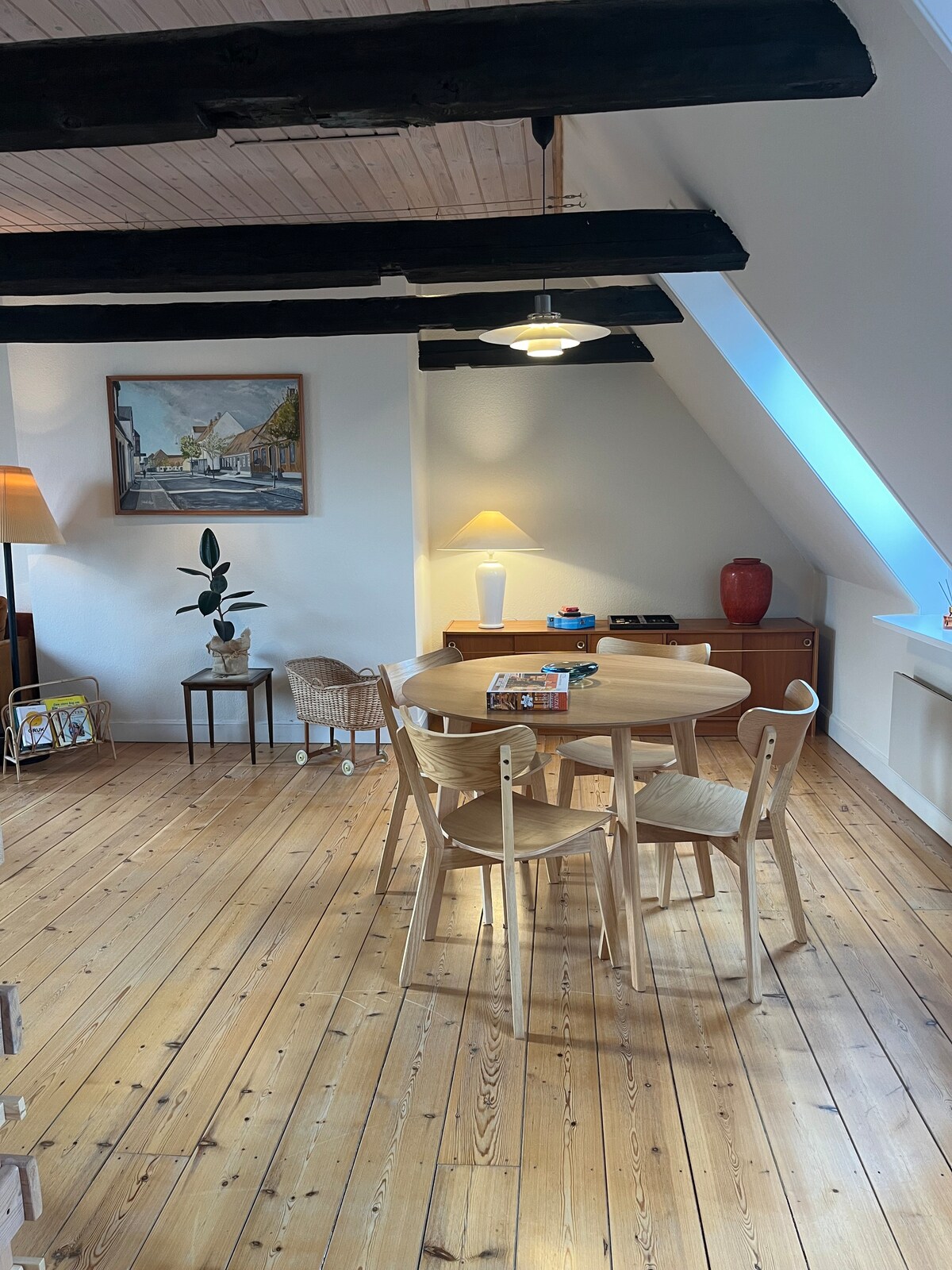 Une charmante propriété de trois étages, magnifiquement située à la périphérie de Skafterup et sur la route de Bisserup, où il y a une plage de sable et un port confortable local. Un appartement de 80 m2 avec salon ouvert et cuisine, poêle à bois et un accès direct au jardin. Concentrez-vous sur le développement durable avec, entre autres, des meubles recyclés. La propriété a été rénovée dans le respect des anciens principes - fenêtres en contreplaqué (1809) peintes à l'huile de lin, travaux de reliure avec chevilles, isolation en laine de papier, toit de chaume, etc. Le tri des déchets et le recyclage sont également importants