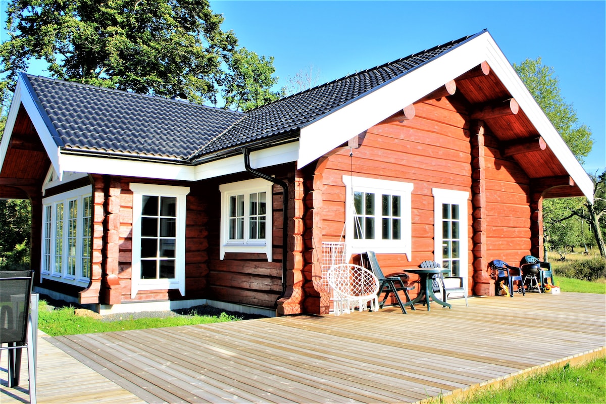 Nouvellement construite en 2021, cette maison en rondins est un logement exclusif fantastique, un emplacement privé, une vue imprenable sur le lac, la forêt et les champs. Beaucoup d'activités. Cet endroit est fait pour les aventuriers ou pour une escapade relaxante. Profitez des draps et des serviettes fraîchement lavés inclus. Wifi. Profitez du foyer à l'intérieur, du salon spacieux à l'intérieur de la maison ou détendez-vous sur la grande terrasse et prenez un bain dans le luxueux SPA extérieur. Parfait pour la randonnée, le vélo, l'équitation, la pêche et le golf. Rosenhult point se