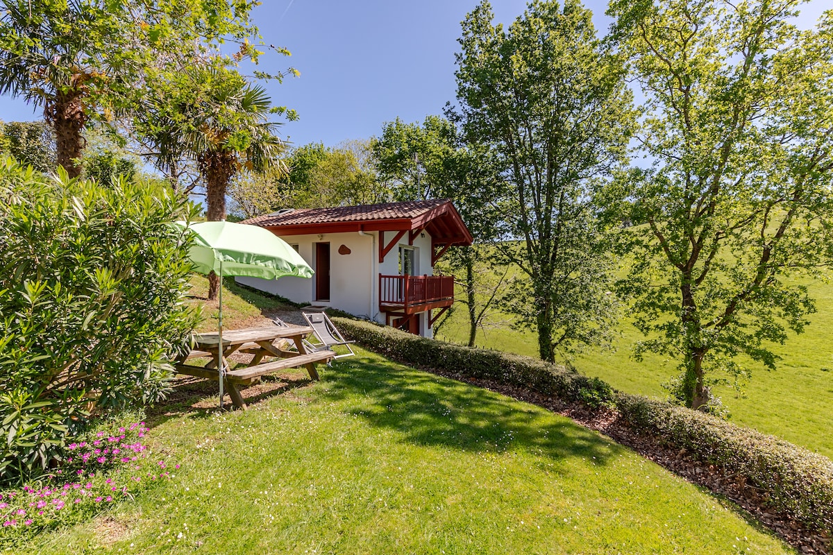 Près de la mer et de la montagne, venez vous ressourcer dans un refuge à 10 mn de Biarritz. Perchée sur pilotis à plus de 3m,entourée d'arbres dans un jardin luxuriant, la cabane est entièrement équipée pour que vous puissiez profiter d’un grand confort en pleine nature. La cuisine d'été toute équipée est sous la cabane .Vous vous réveillerez au chant des oiseaux. OPTION: payable sur place (pas de CB): Bain nordique 40€ (ou 50€ avec 2 peignoirs) . Petit déjeuner simple autonome compris .